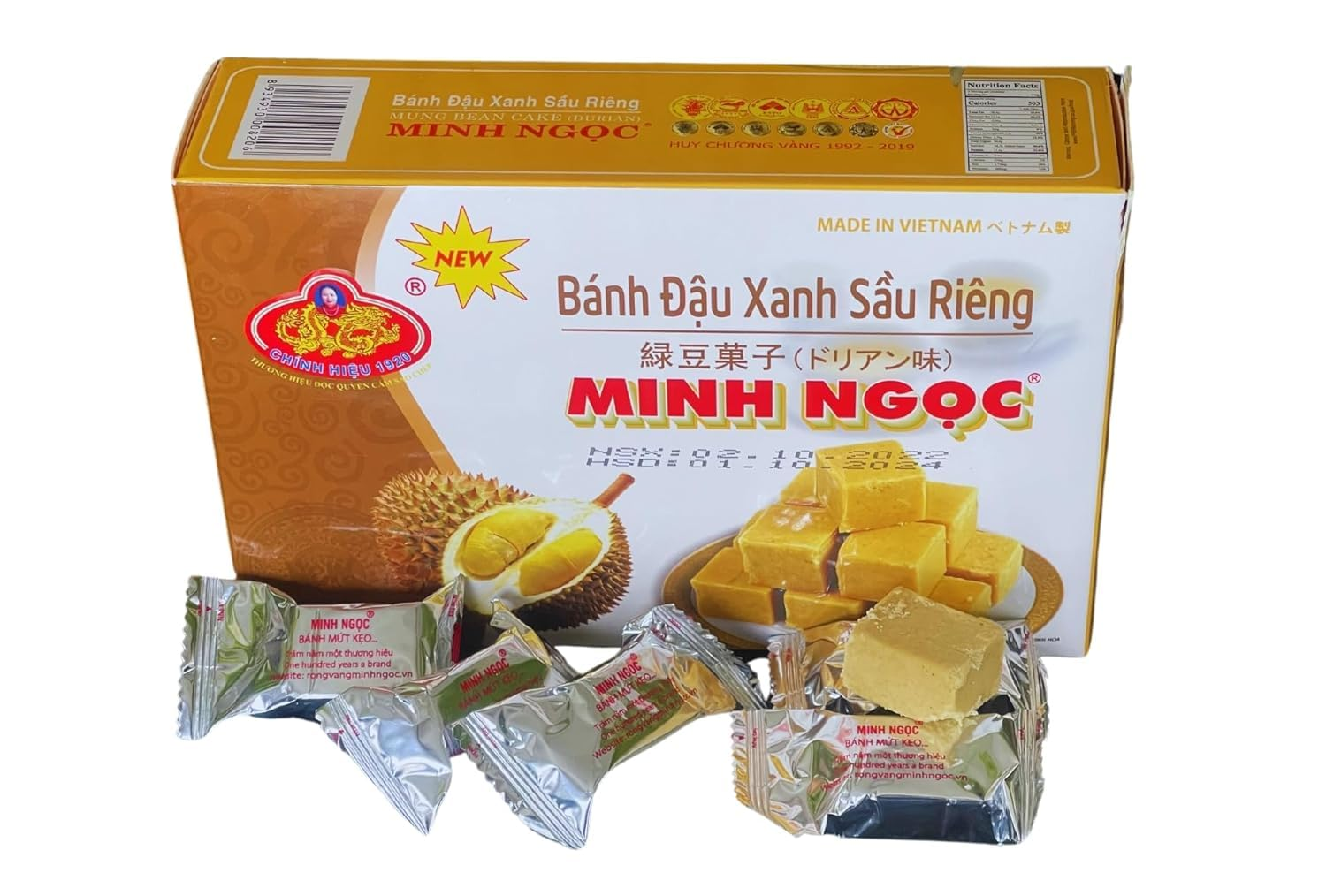 1 Pack - Durian Mung Bean Cake - Banh Dau Xanh Sau Rieng - 300 g per Box - Product of Vietnam