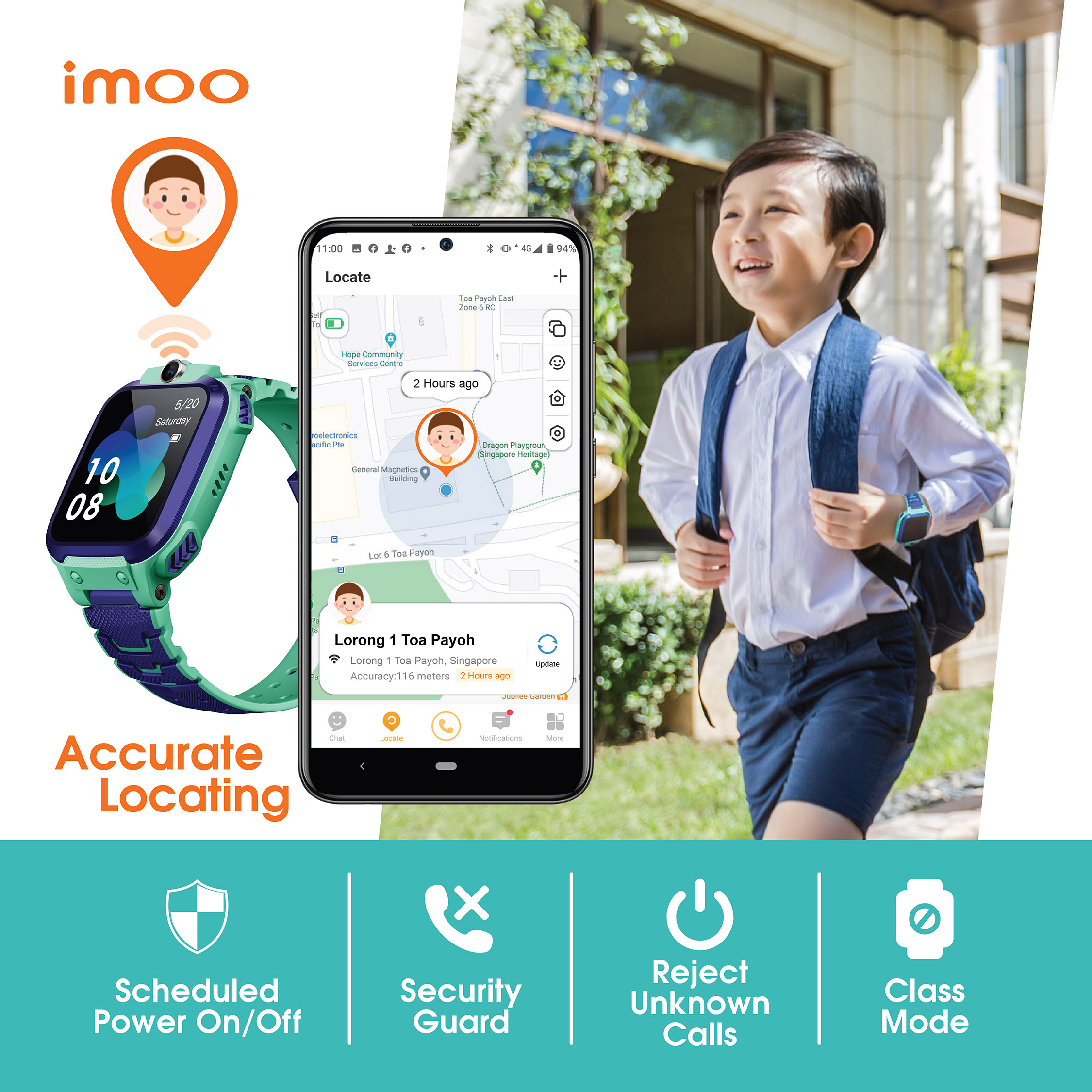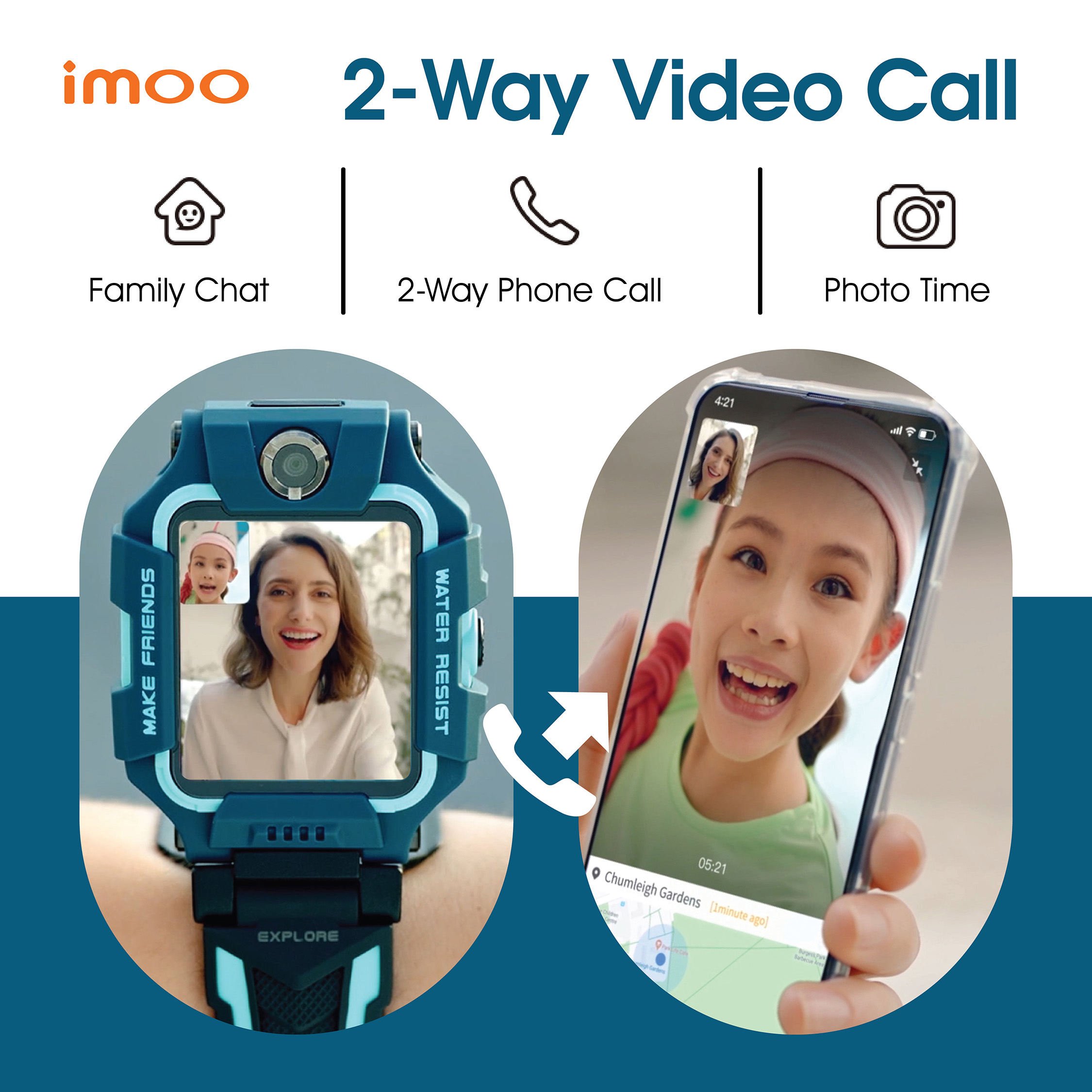 • Realtime HD 2-Way Video Call : Parents can monitor their kids’ location & surrounding with 8MP wide camera.