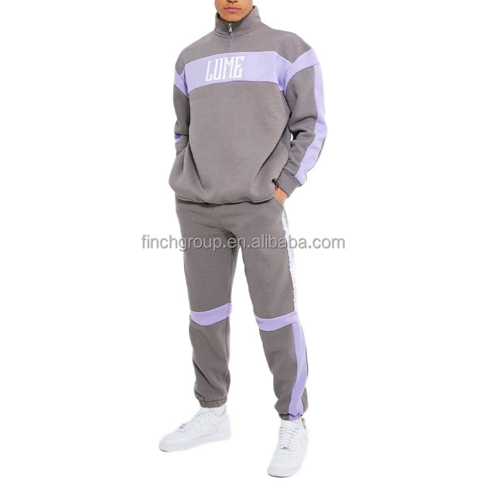 Finch Garment custom logo print mens sweatsuit 2 piece sets quarter zip up training jogging wear tracksuit