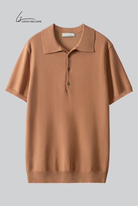 Lapel No Button 100% Cotton Ivory White Polo Shirt High-end Business Casual Slim Knit V-neck Short Sleeve Men's T-shirt