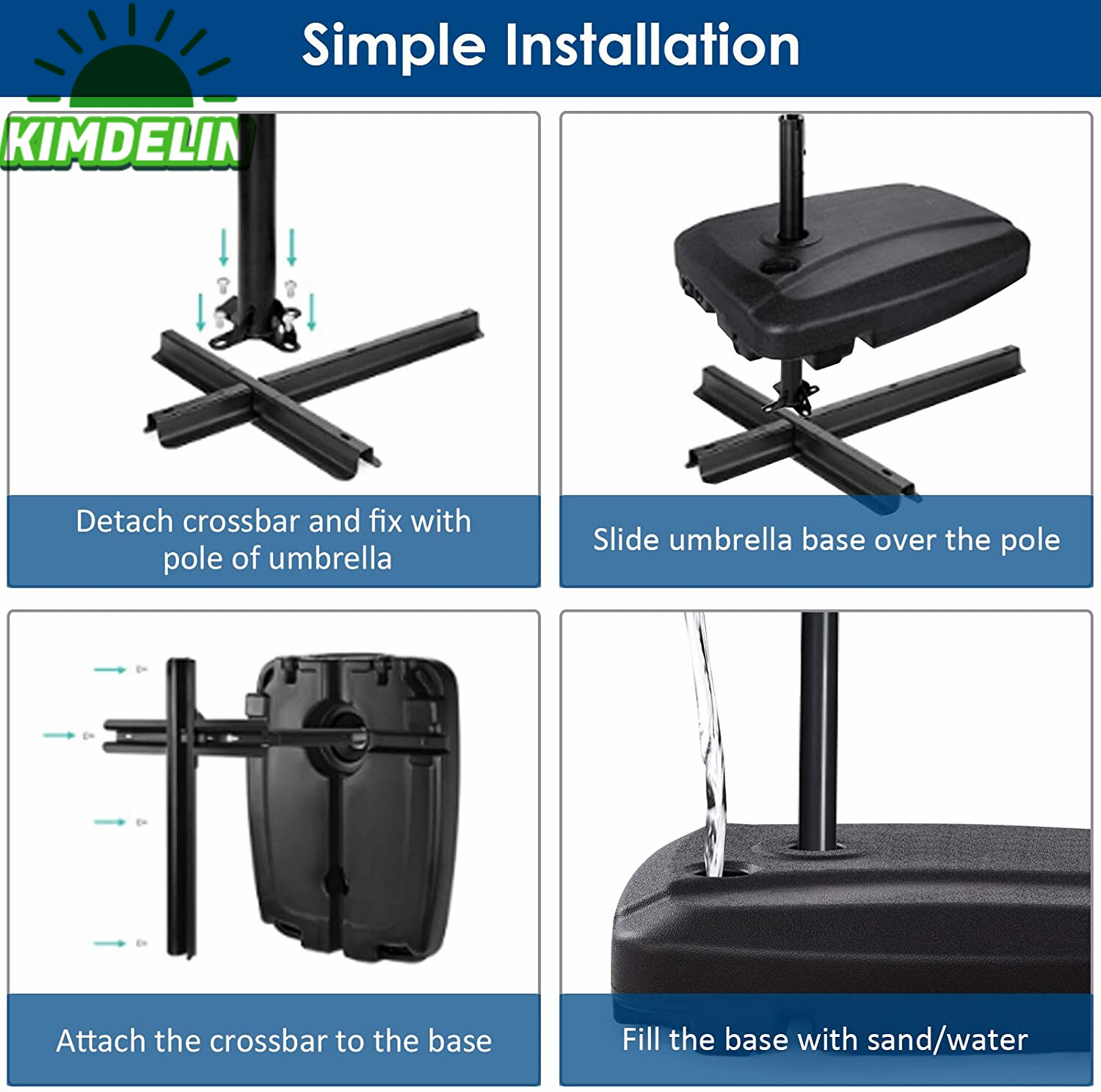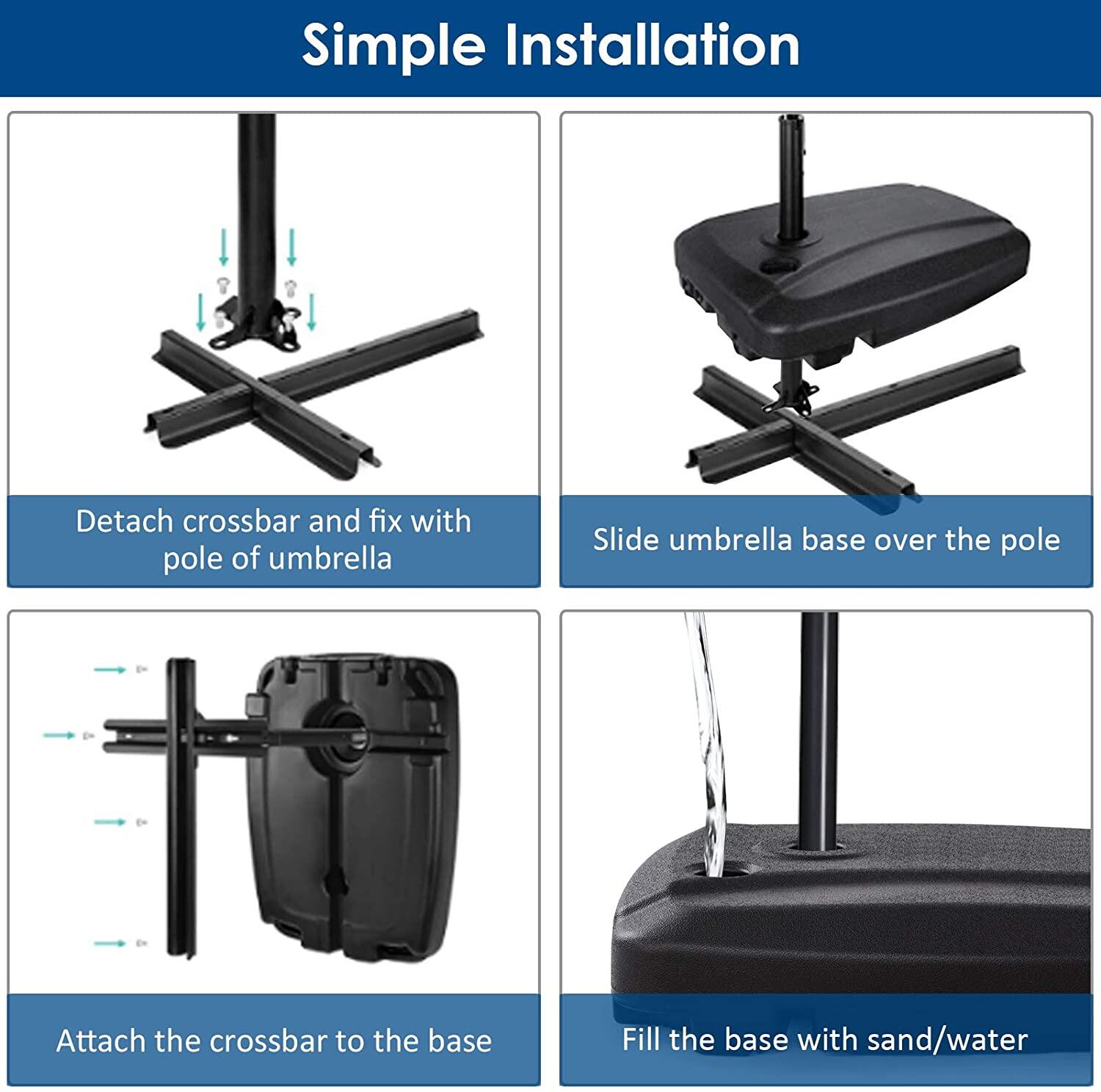 Kimdelin Garden Umbrella Base Outdoor Water Injection Parasol Stand Sunshade Anchor Patio Umbrella Stand Sun Shelter Accessory Water Fill