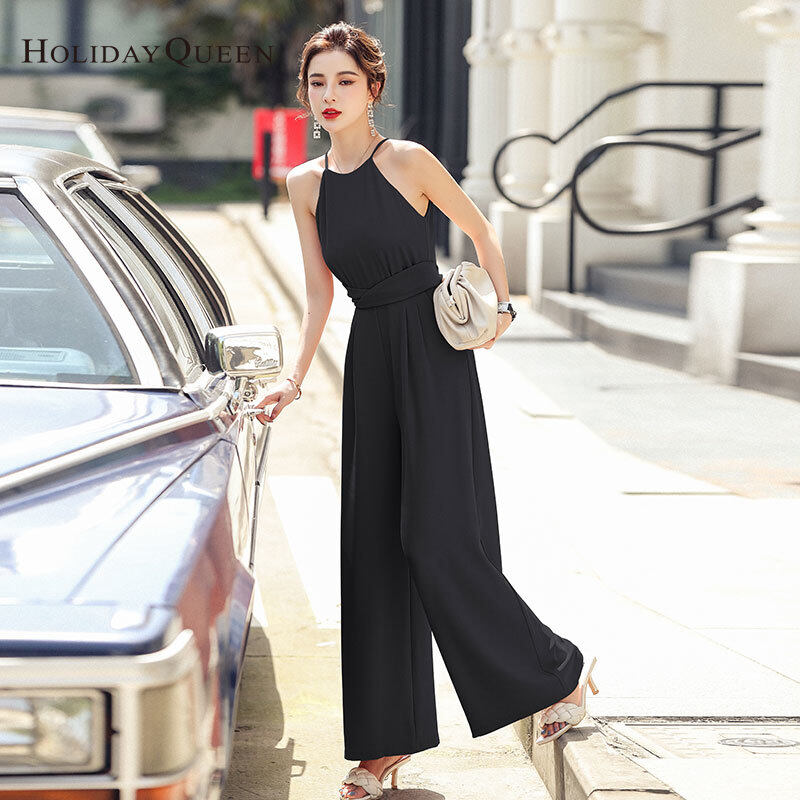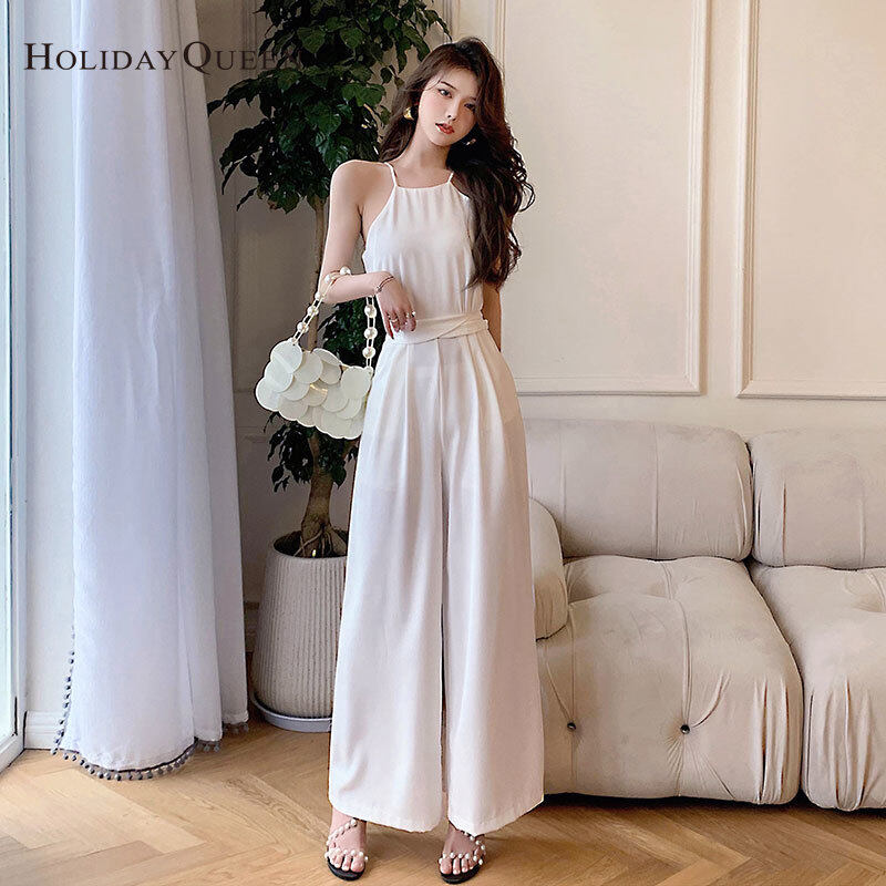 HolidayQueen 2021 Summer New Sling Lace-up High-waisted Wide-leg Thin Jumpsuit S M L XL Free Shipping HQ0514