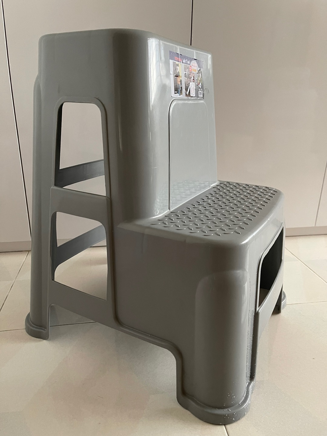 Featuring our Toyogo 2 step plastic ladder stool - stackable and stable, stow it away easily for clean up. It's regular shape allows for easy storage with stacking. Unstack easily for extra guests for dining, mahjong, open house. Solid material that supports up to 100kg with inbuilt friction safety grooves that prevents slipping. Made from our virgin PP Plastic our customers have come to know and love for over 30 years and counting - it makes for a great addition to any home.