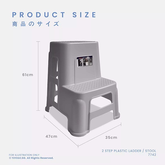 Lightweight but strong and very durable that will last for years to come. Multi-use as a ladder stool for harder to reach corners like shelves. Toyogo stools come in different sizes for all needs. An affordable and inexpensive essentials for your family! Unlike wood or metal stools, plastic stools are not only waterproof, but they are also termite resistant, rust-proof and more durable.