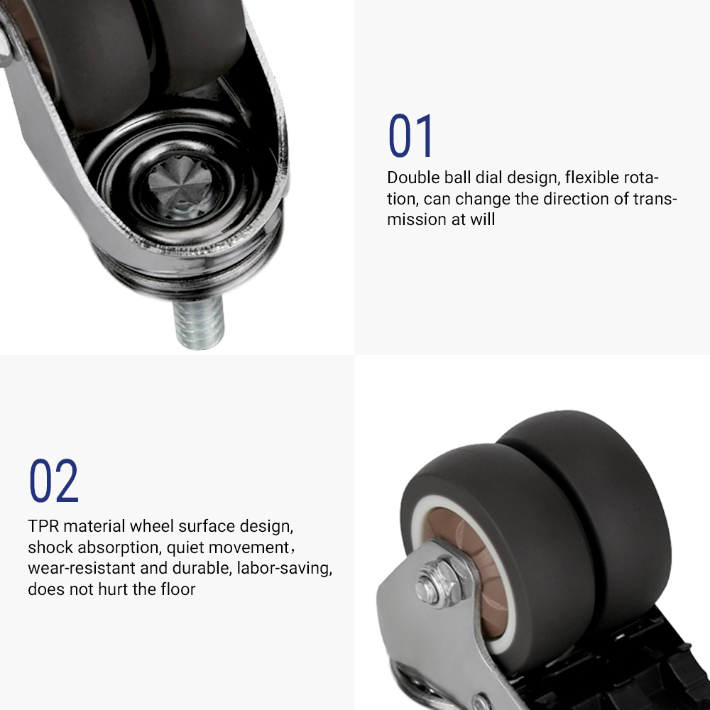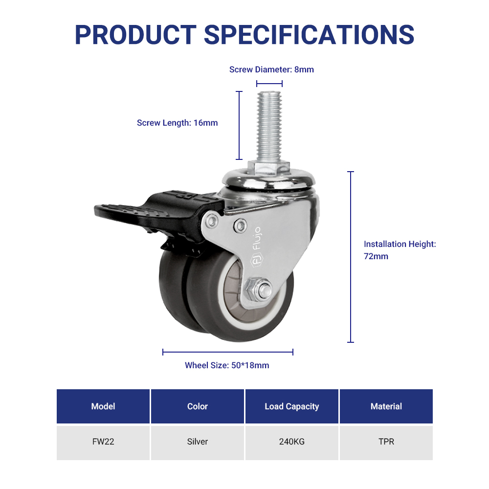 Flujo 4pcs M8 Swivel Wheels Caster TPR Threaded Stem Caster Wheel with Lock Brake Screw 360 Degree Caster Wheels Heavy Duty For Home Office Standing Desk Chair Load 80kg/pc