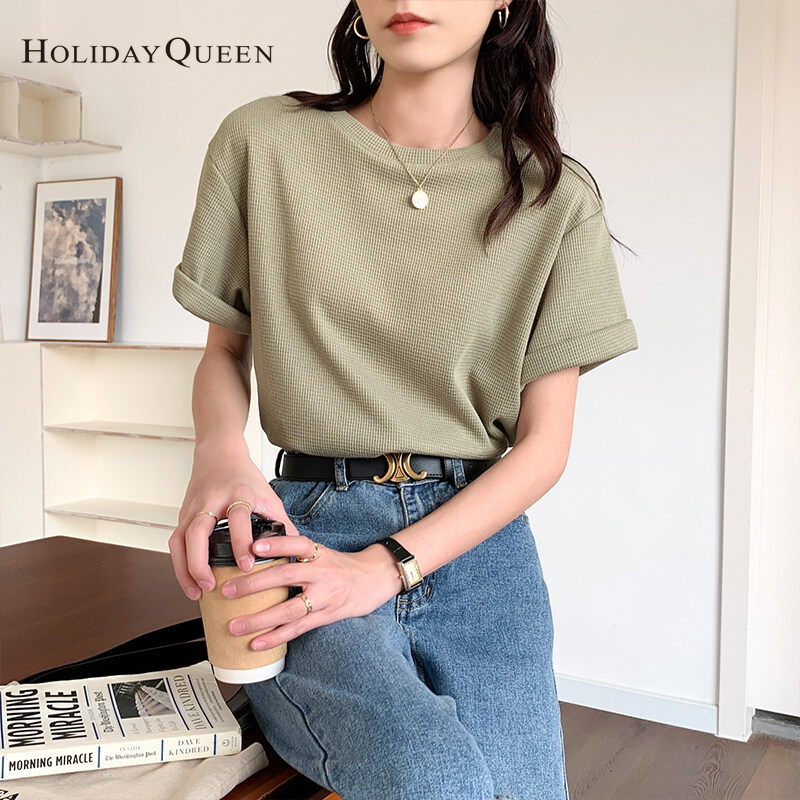 HolidayQueen Matcha Green Short-sleeved T-shirt Women's Korean Version Summer New Waffle Loose All-match Top S M L XL Free Shipping HQ1261