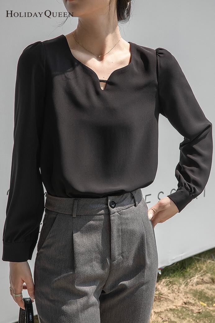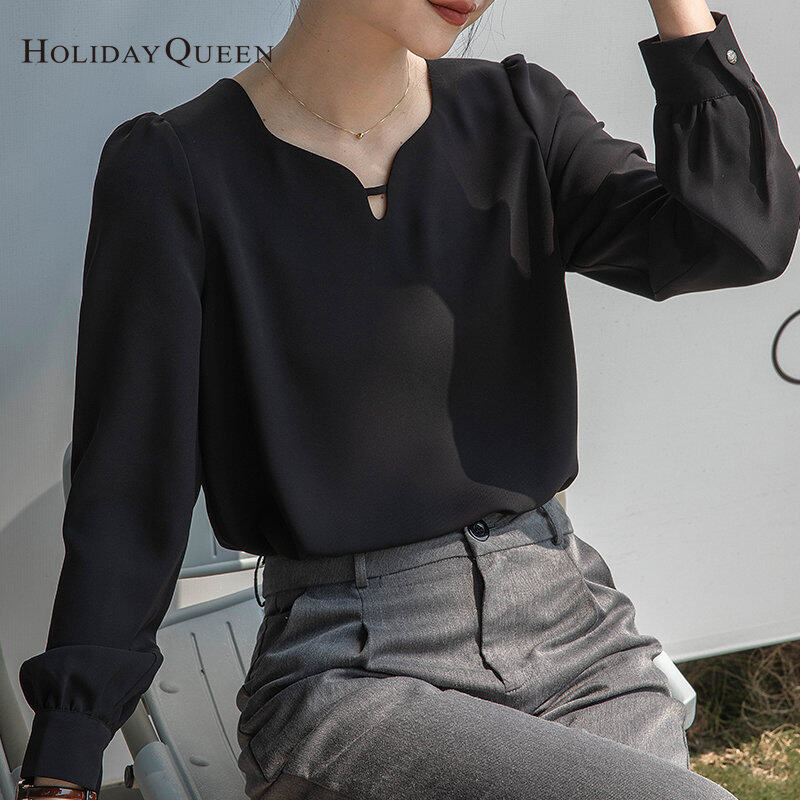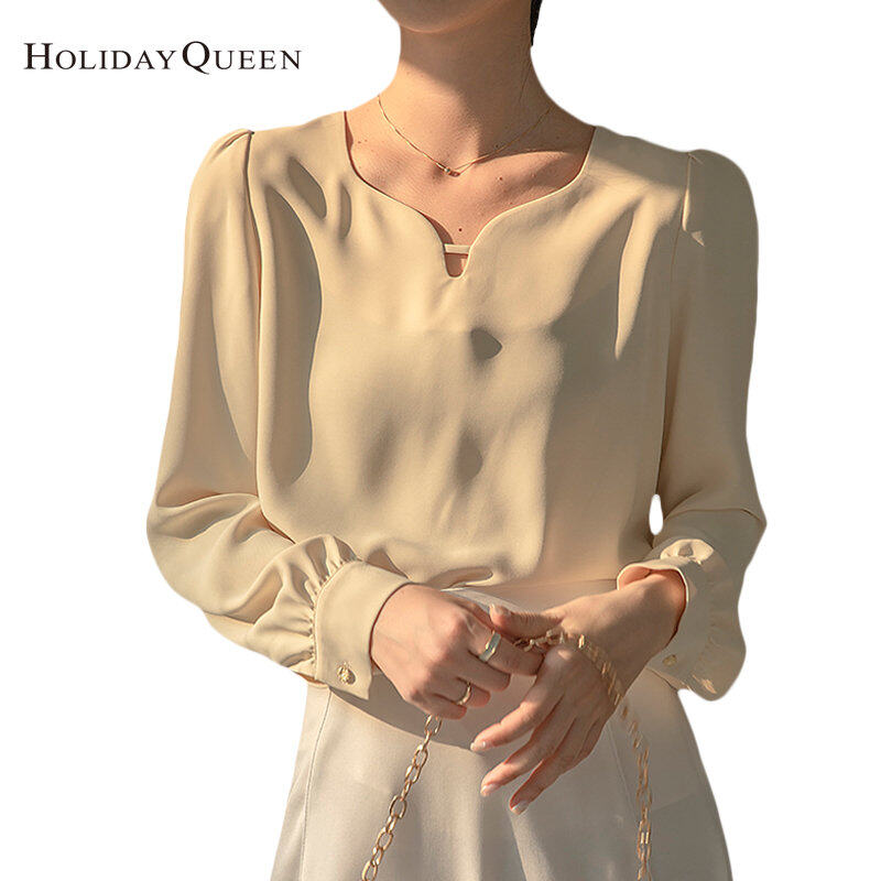 HolidayQueen New Temperament Drop Collar Shirt Women Early Autumn Retro New Design Niche Shirt Women's Top Free Shipping HQ1799