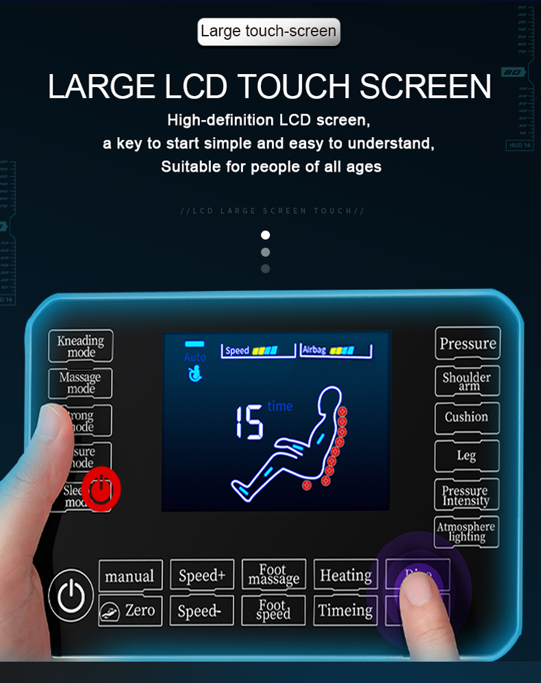 * U-shaped headrest package * Sleep mask | Thigh embracing Leggings * Zero gravity levitation | SL track layout * Full body air bag embracing | Legs stretch freely * Hip roller massage | Foot roller * Timing design | HIFI Bluetooth music * Customlzed automatic mode * A variety of human simulation techniques * Multil gear adjustment | One click forward * All in one installation free * Save electricity and reduce consumption