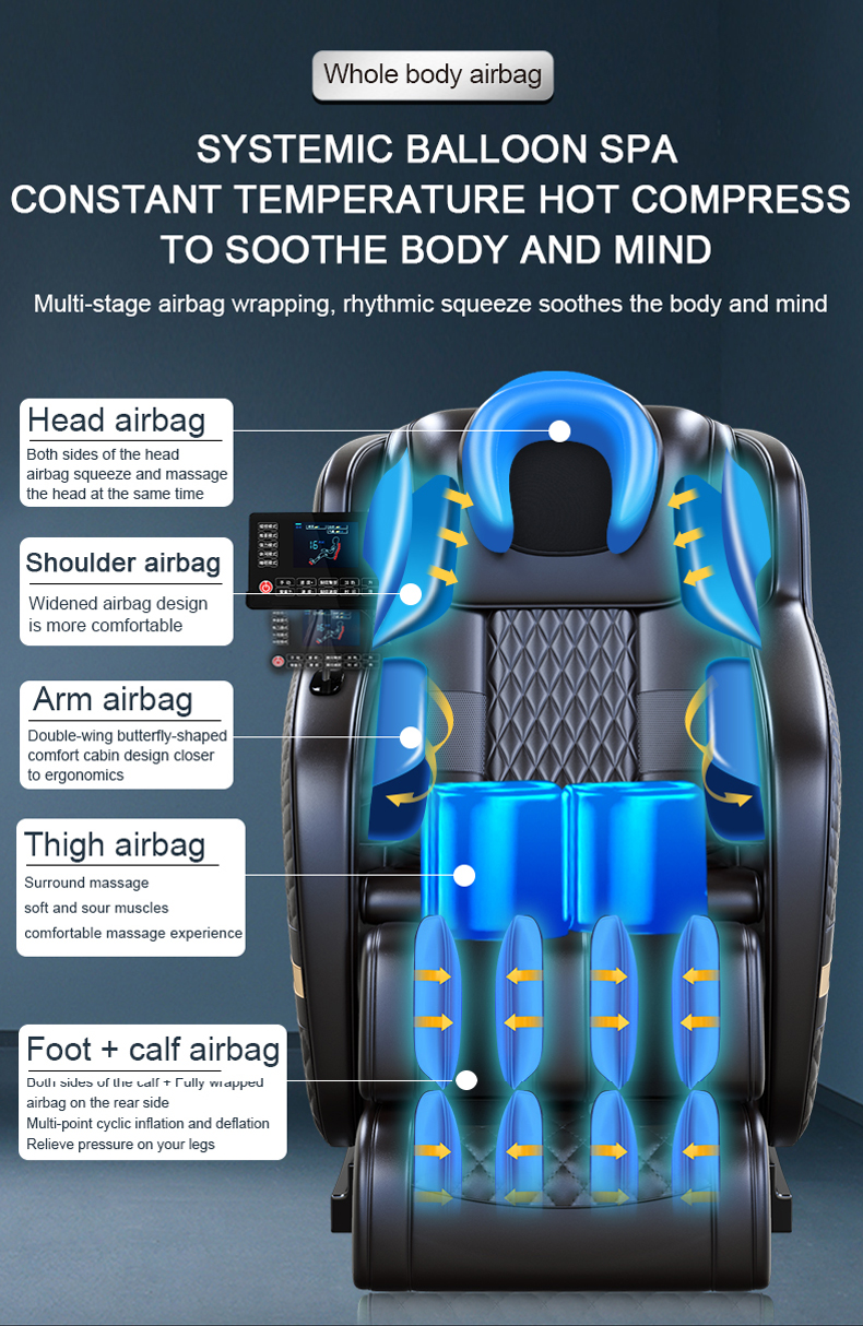 * Systemic balloon spa * Constant temperature hot compress * To soothe body and mind * Multi-stage airbag wrapping, * Rhythmic squeeze soothes the body and mind