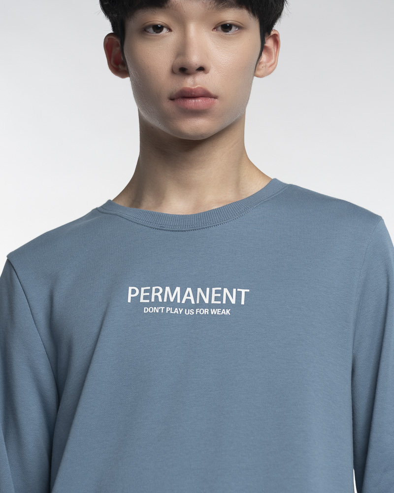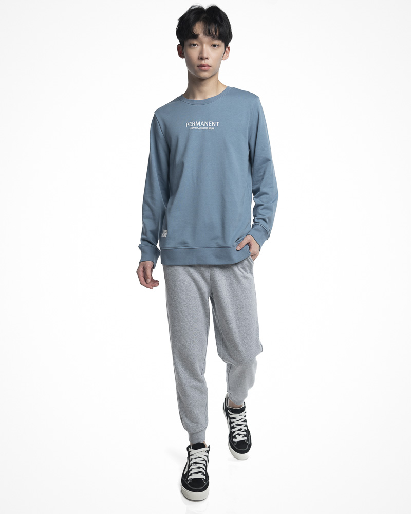Regular Solid Coloured Long Sleeve Sweatshirt with Round Neck. Comes with Permanent Slogan at the front. Made of cotton.