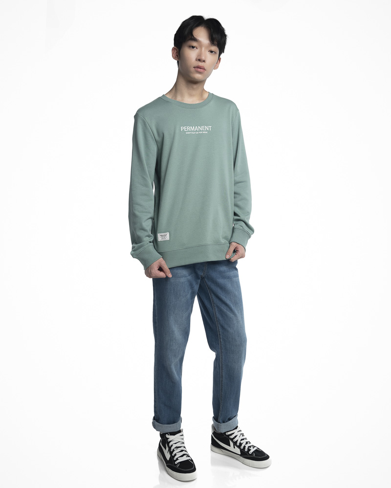 Yishion Men Solid Coloured Long Sleeve Sweatshirt with Permanent Slogan (Green)