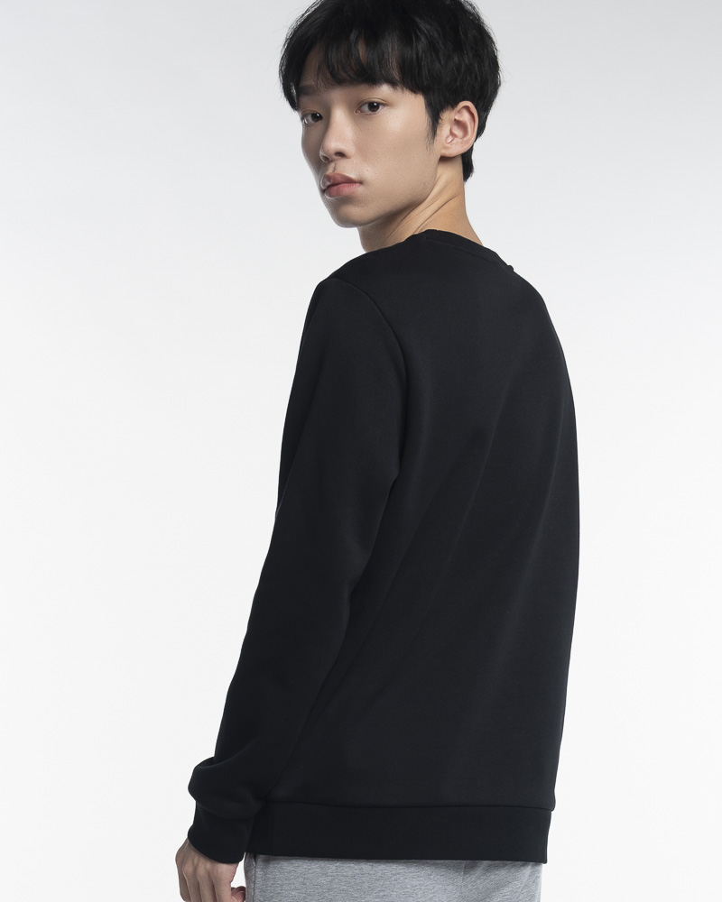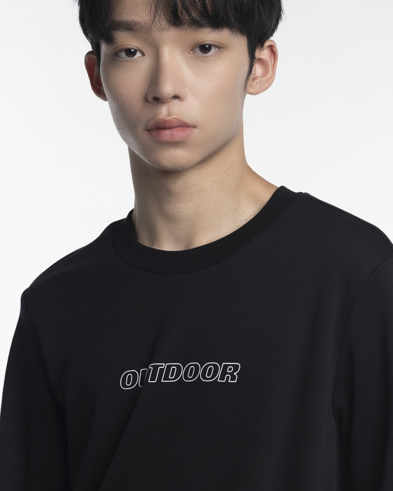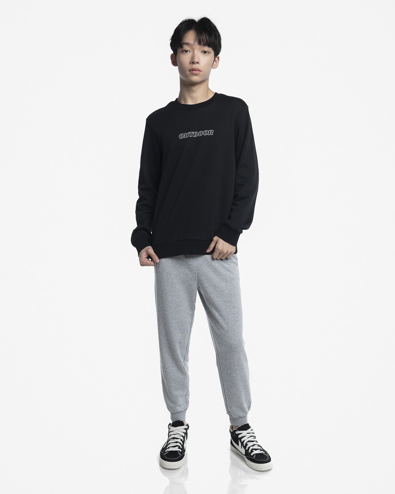 Yishion Men Solid Coloured Long Sleeve Sweatshirt with Outdoor Slogan (Black)
