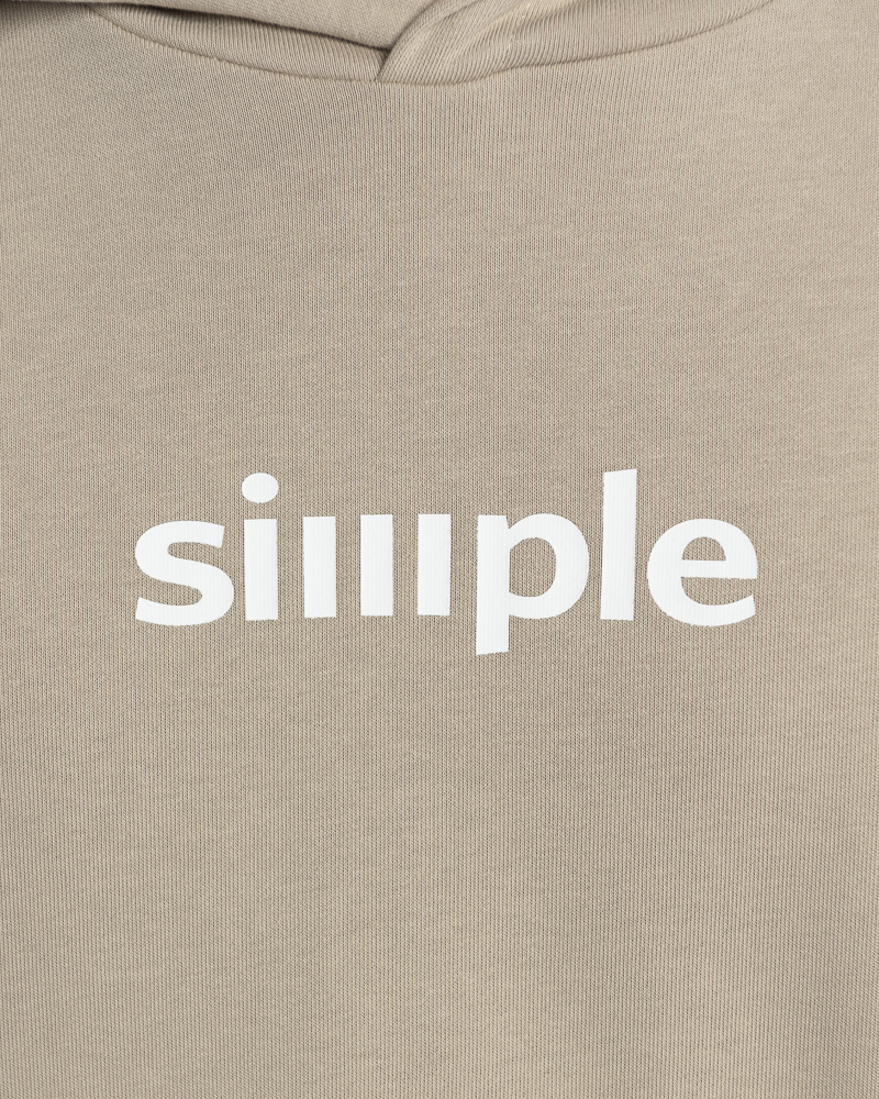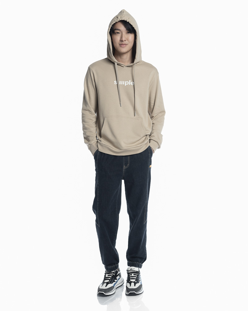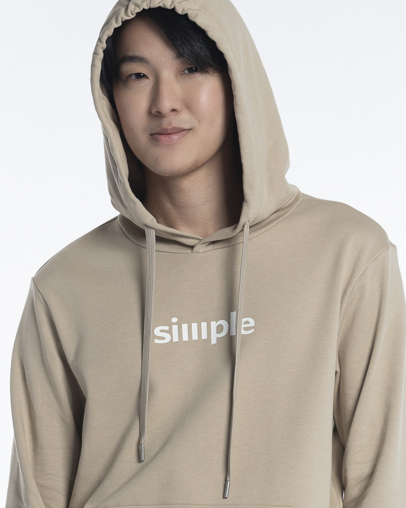 Yishion Men Solid Colour Pullover Hoodie with Kangaroo Pockets and SIMPLE Slogan Patch (Khaki Beige)
