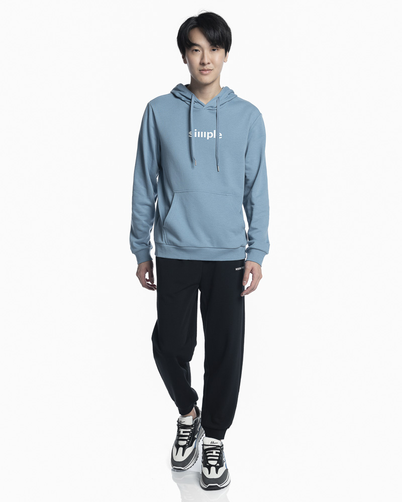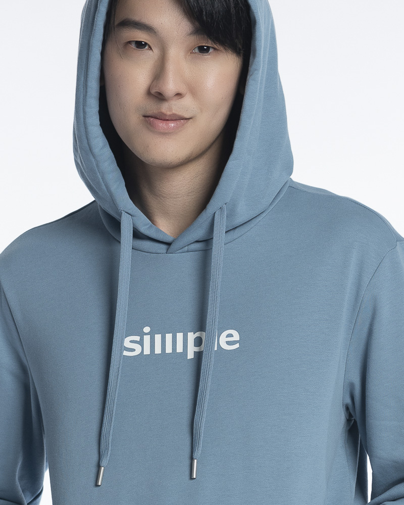 Yishion Men Solid Colour Pullover Hoodie with Kangaroo Pockets and SIMPLE Slogan Patch (Stone Blue)