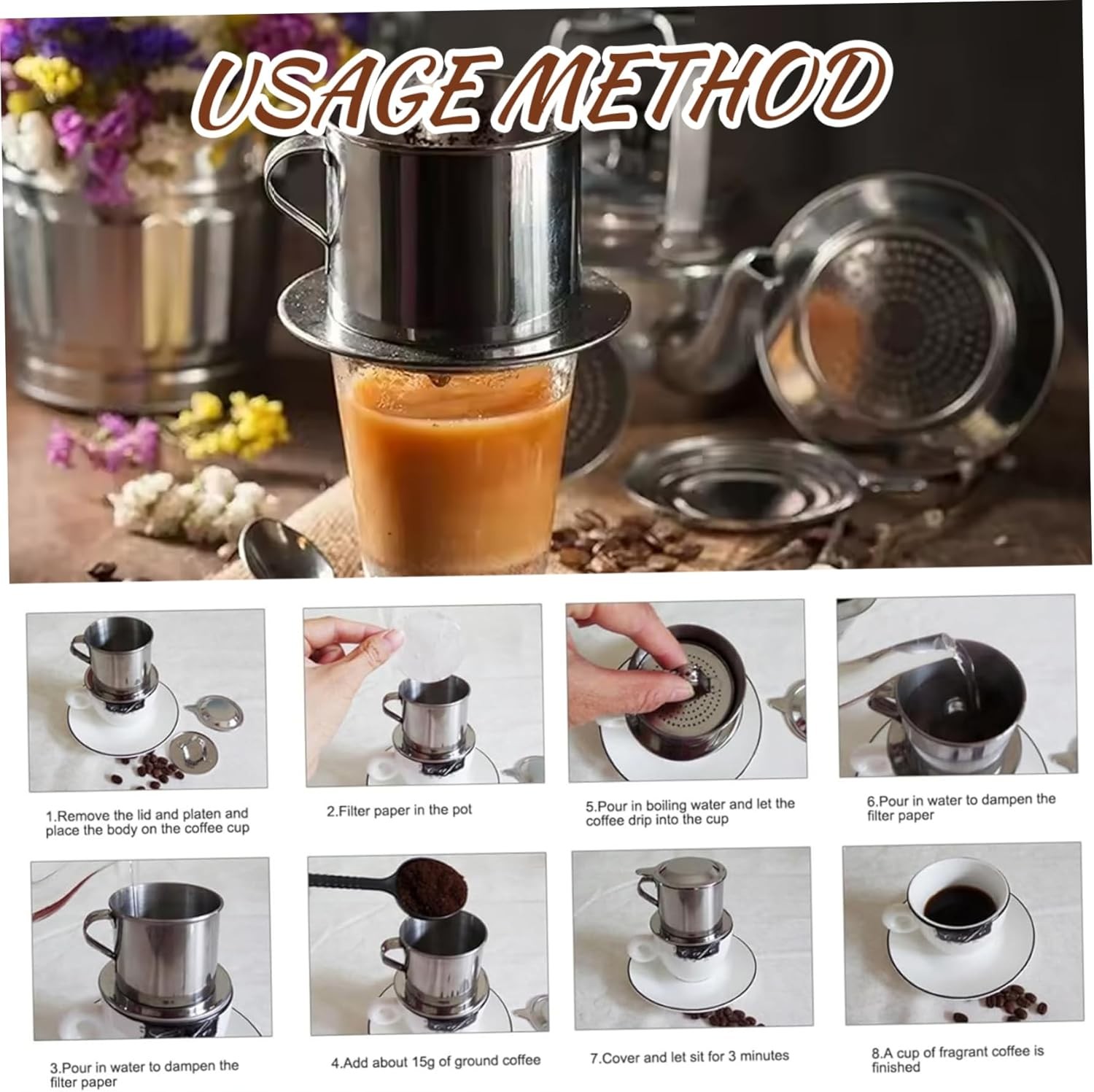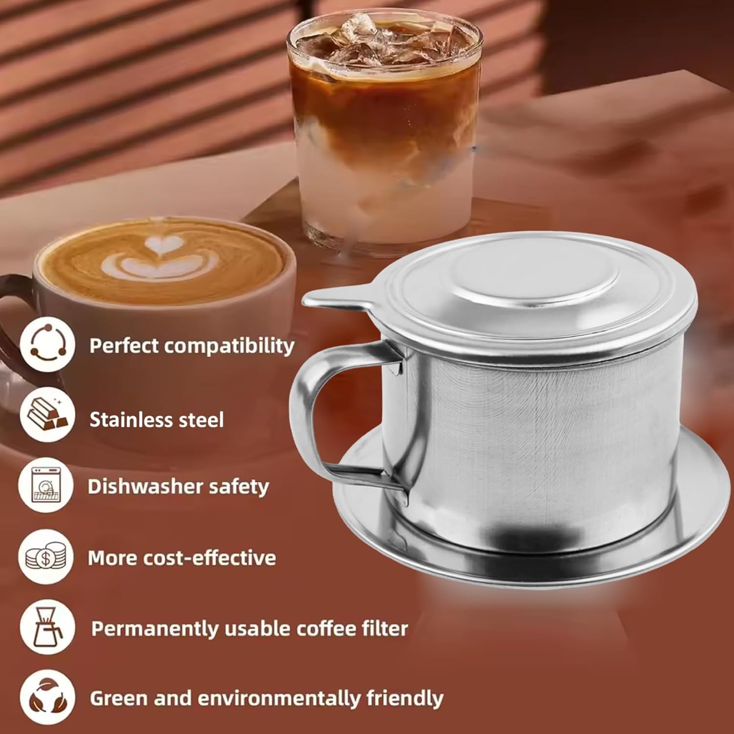 2Pcs Vietnamese Coffee Dripper Stainless Steel Vietnamese Coffee Filter Professional Washable Reusable Cafe Accessories