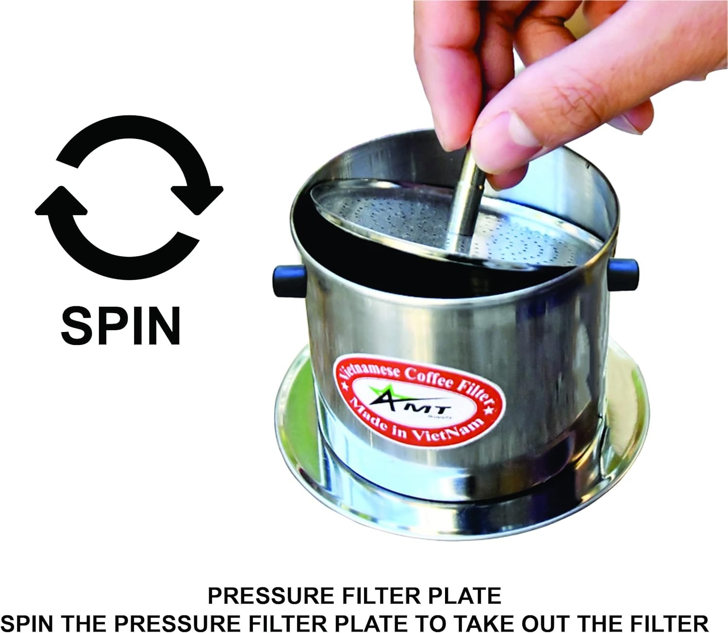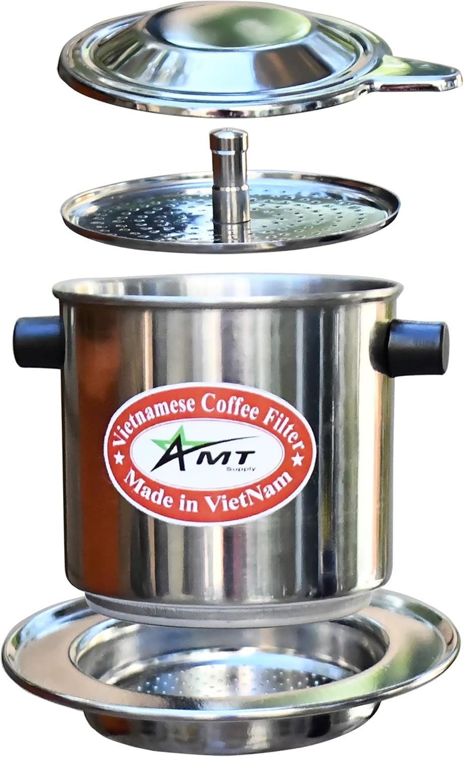 AMT 13 oz Coffee Maker - Vietnamese Phin Filter with Cork, 2-3 Servings, Screw Down Coffee Dripper for Home Office