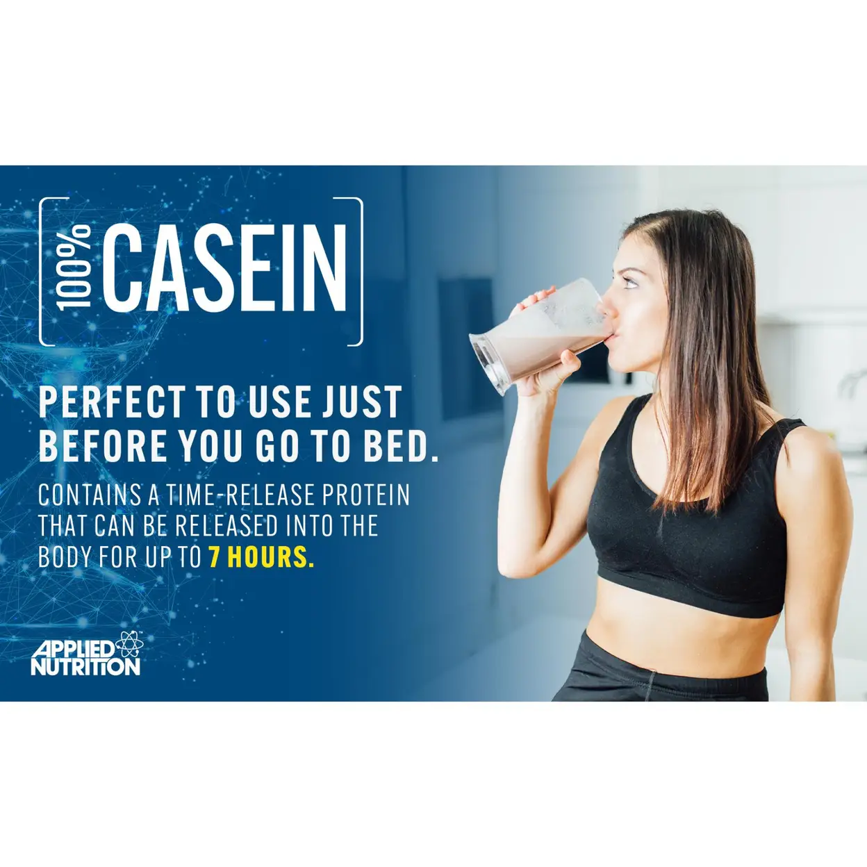 Casein protein powder by Applied Nutrition is designed for optimal use just before bedtime. It features a time-release protein formula that delivers amino acids to your muscles for up to 7 hours, helping to refuel and support muscle recovery while you sleep. Available in three delicious flavors—Chocolate, Strawberry, and Vanilla—Micellar Casein is as tasty as it is effective. This protein powder helps maintain and grow muscles by providing vital BCAAs, without the need for pre-bedtime meals. It is easy to prepare, requiring just a simple mix with water or milk. Tested for athletes, it ensures safety and quality for professional use.