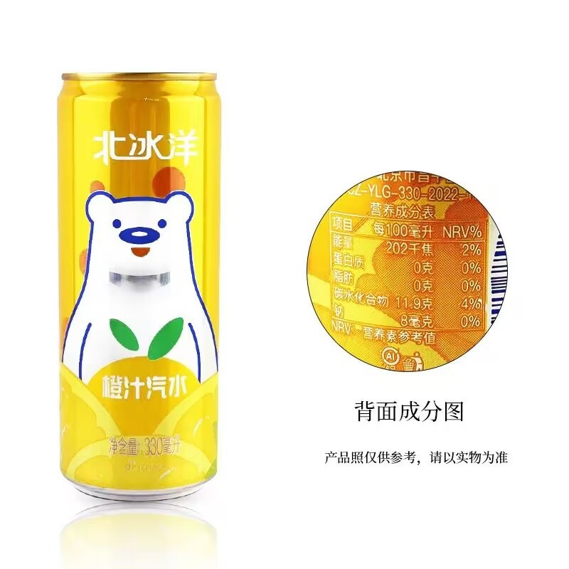 Arctic Ocean soda orange juice orange juice 330ml*24 cans full box of old Beijing juice canned carbonated beverage sour plum juice.