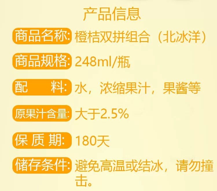 Arctic Ocean soda orange juice orange juice glass 248ML*24 bottles