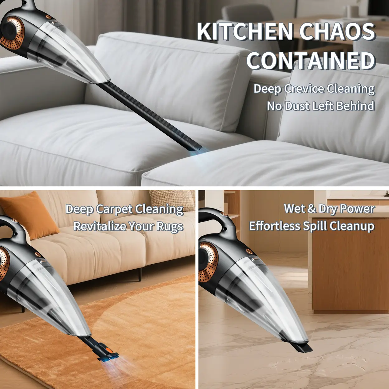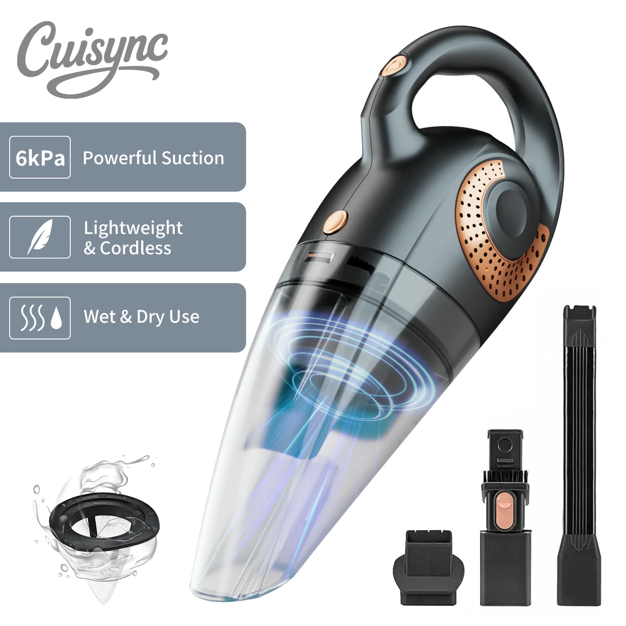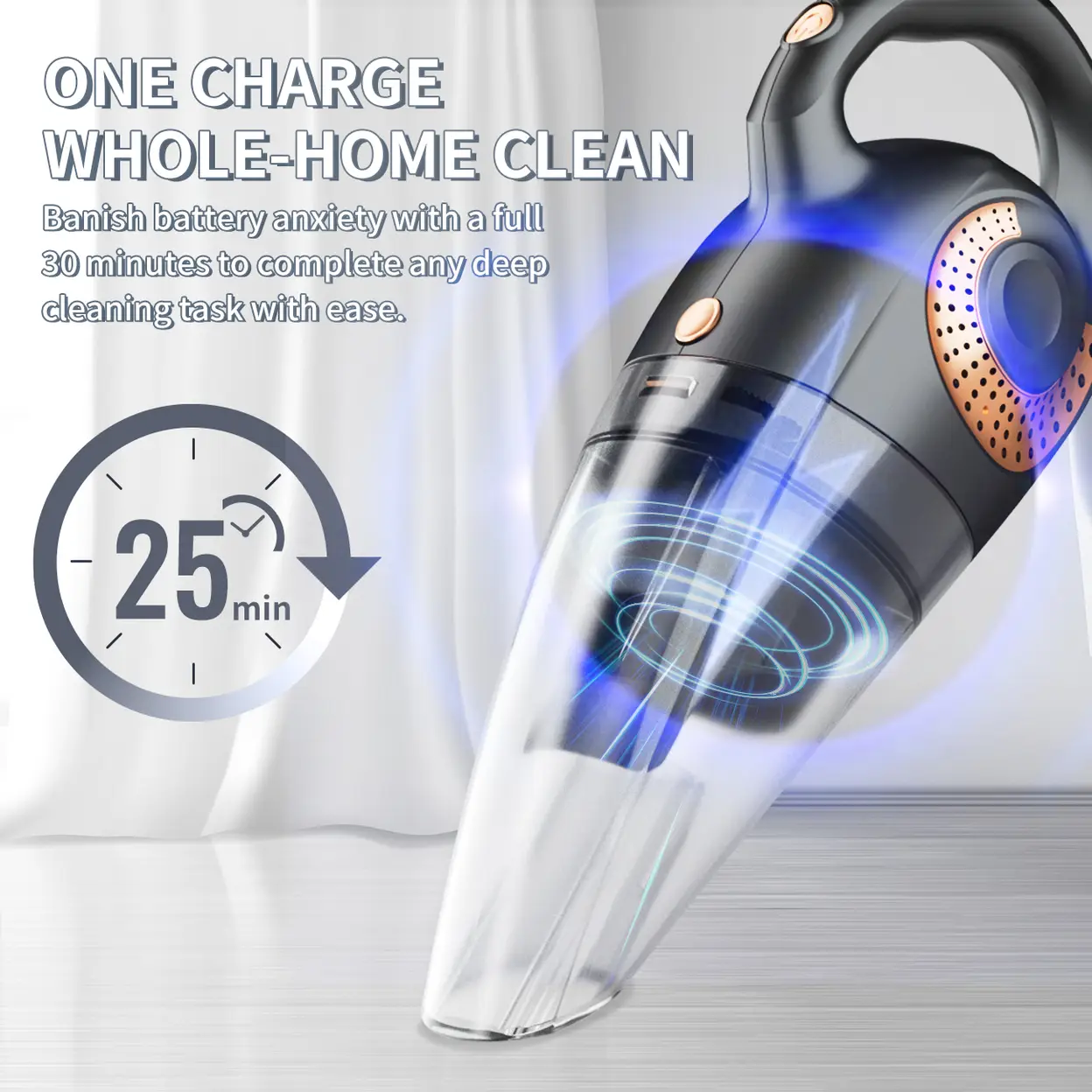 ATSHARK Handheld Vacuum Cordless Rechargeable, 6000 Pa Suction Power, 30-min Runtime Low-Noise Car Vacuum Cleaner for Car/Home/Pet, XL-620B