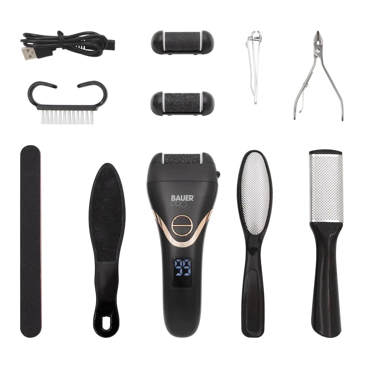Specifications Brand: Bauer Model Number: 38729 Operation: Rechargeable cordless Rollers: Coarse and fine Colour: Black