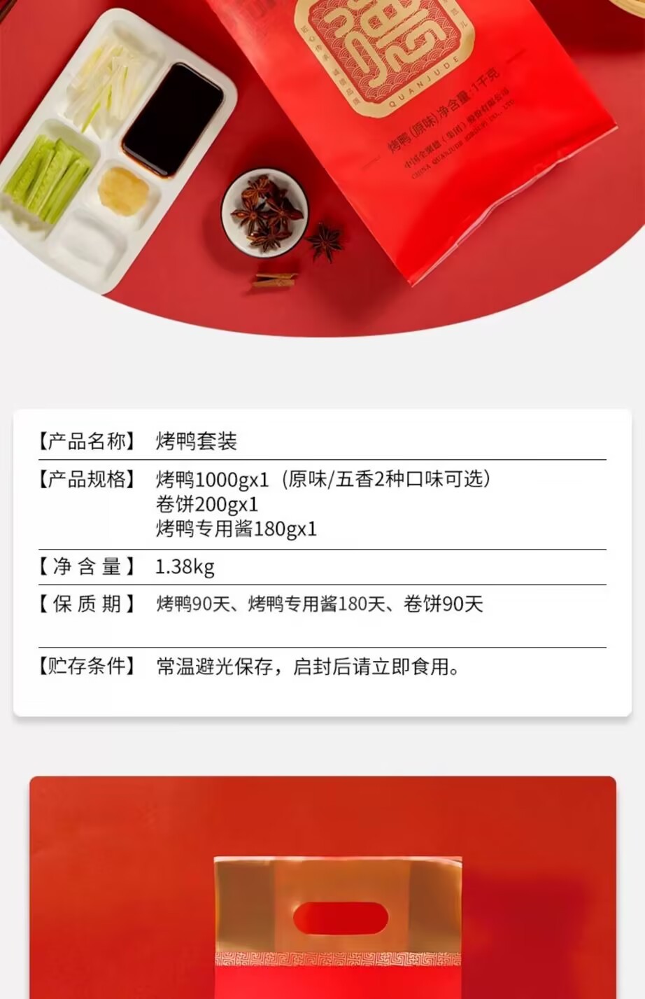 Beijing roast duck with cake sauce whole Beijing specialty cooked food meat time-honored roast duck gift bag