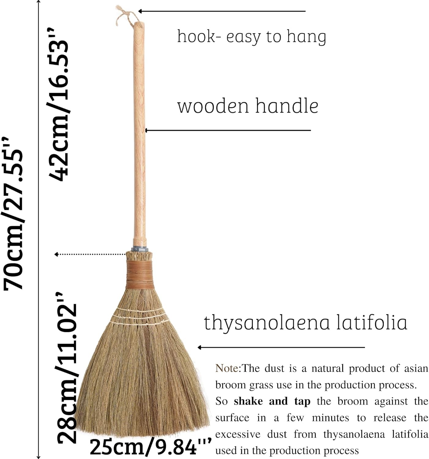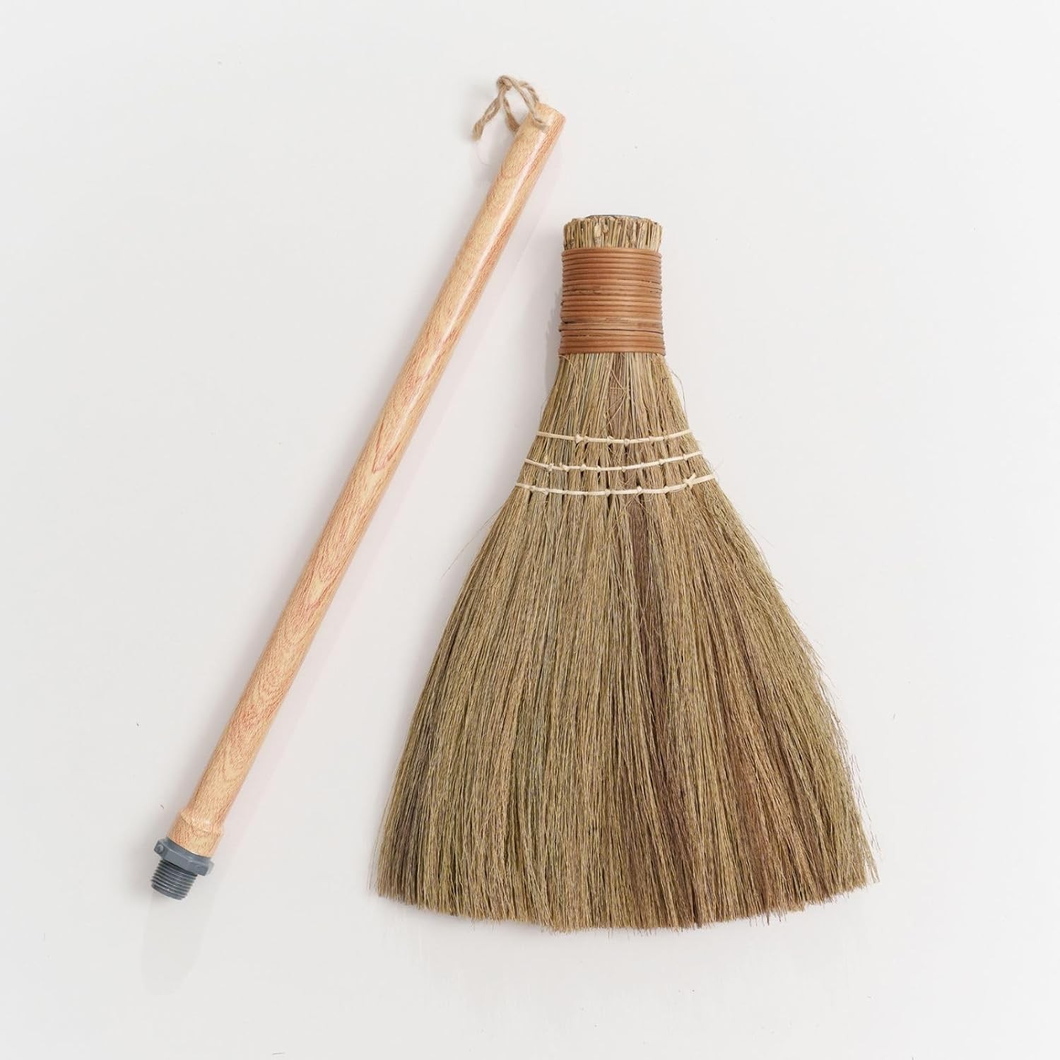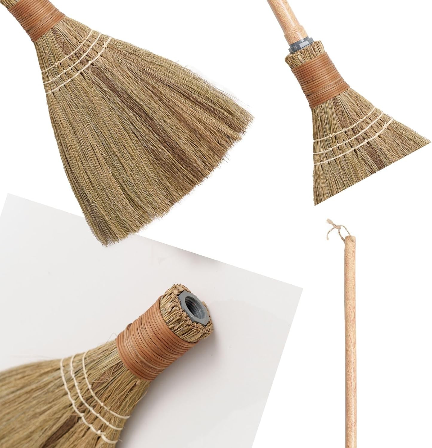 BMart Home Small Natural Whisk Sweeping Hand Handle Broom - Vietnamese Straw Soft Broom for Cleaning - Decoration Items - Indoor - Outdoor - 7.87'' Width, 24.4" Length