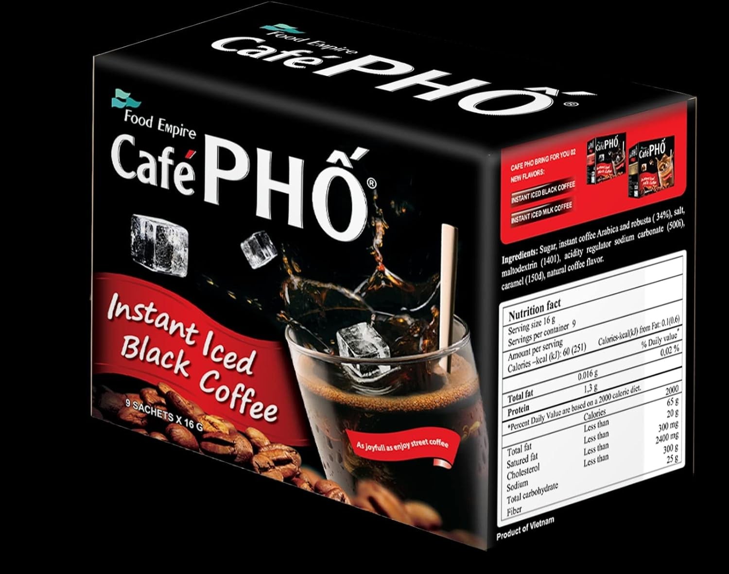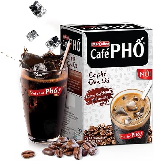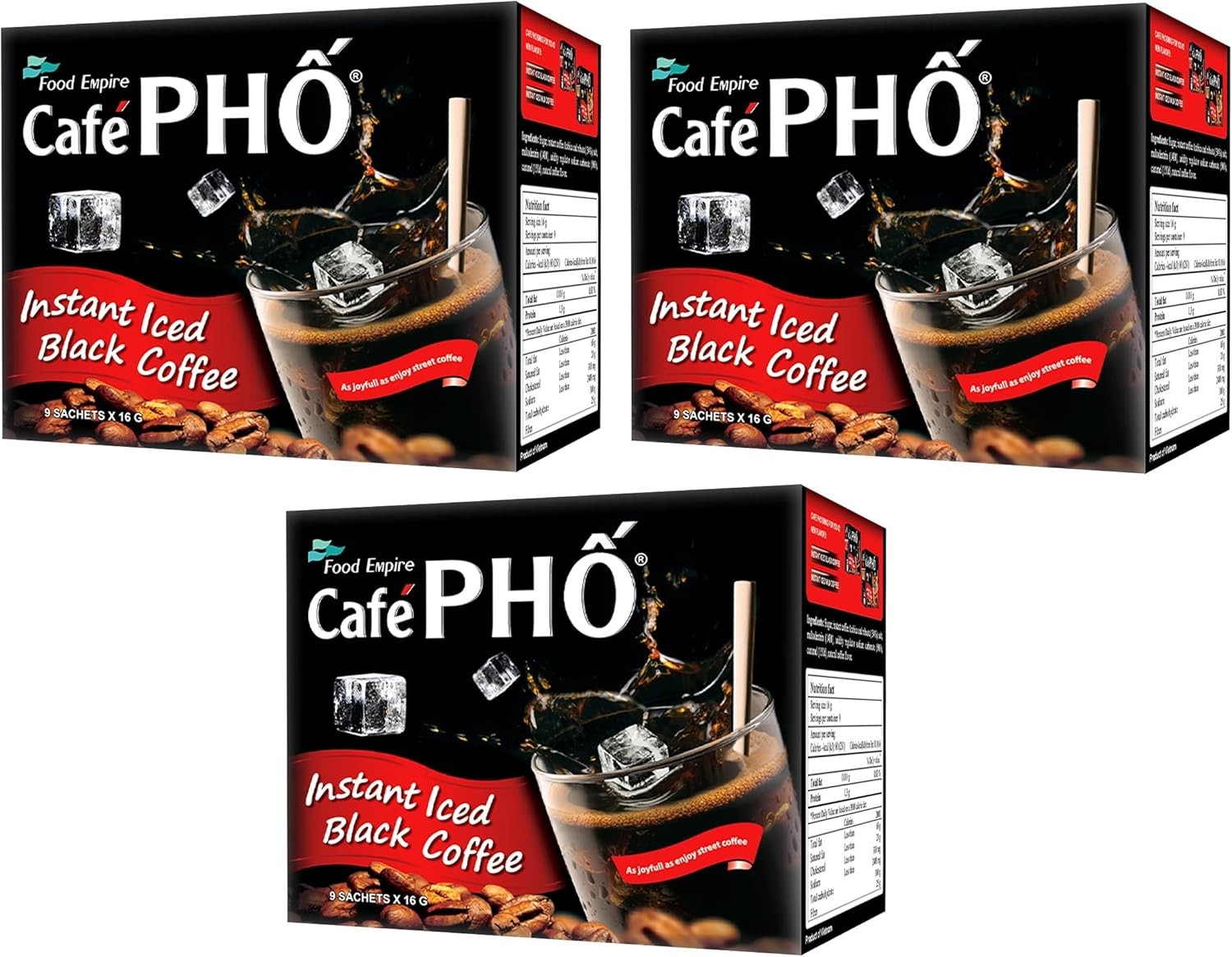 Cafe Pho Vietnamese Instant Coffee Mix, Iced Black Coffee, Cafe Den Da, Single Serve Coffee Packets, Box of 9 Sachets, Pack of 3