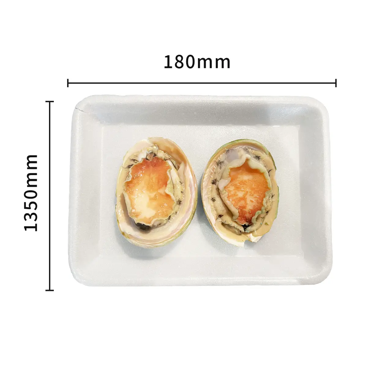 Weight: 140g ±10%, 2 whole abalones per tray