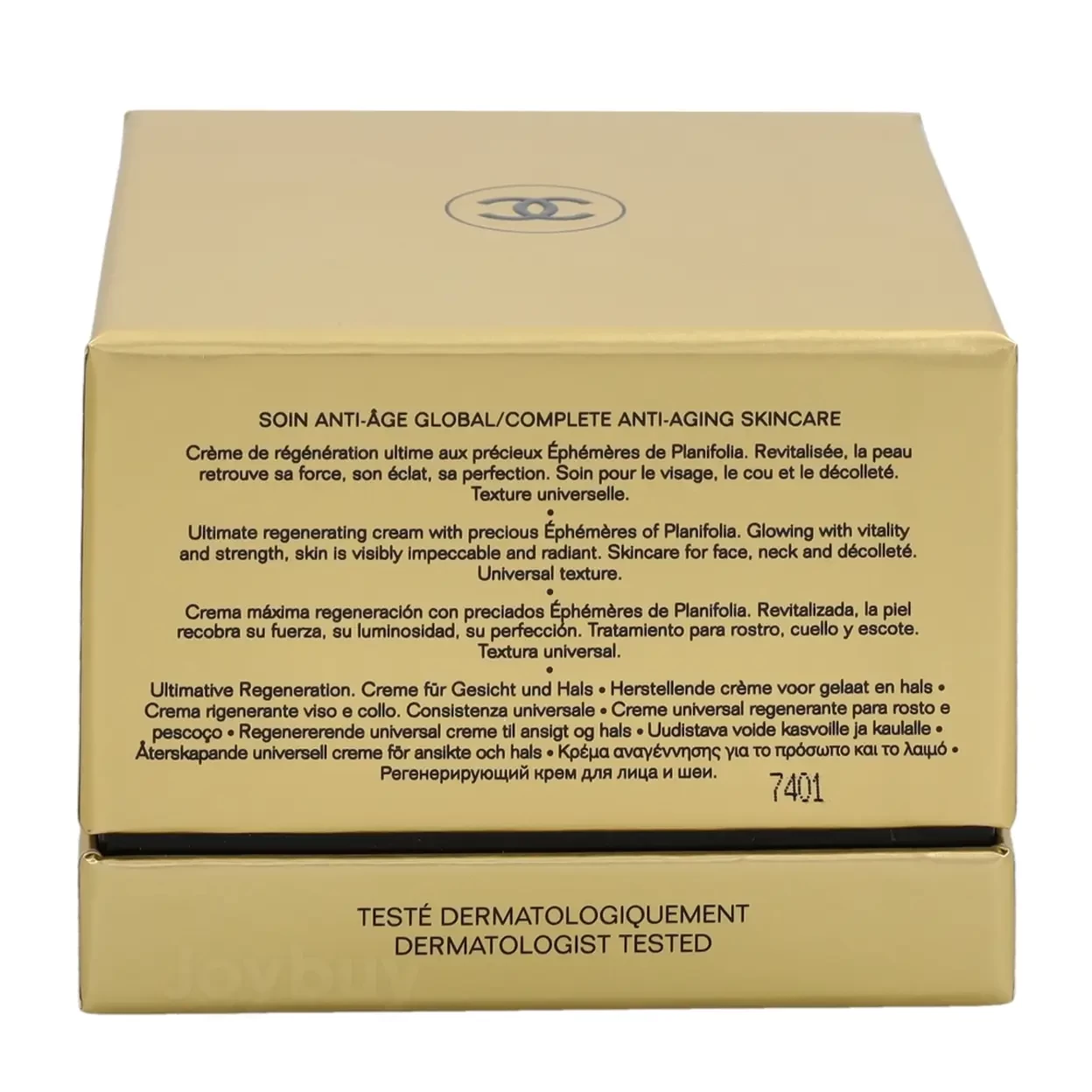Chanel Sublimage La Creme Ultimate Skin Regeneration Cream 50g is an exceptional next-generation moisturiser that delivers the pinnacle of luxury skincare. This 50g cream is enriched with the Éphémères of Planifolia, rare and powerful molecules that are ephemeral in nature yet captured and made eternal in the formula using CHANEL's exclusive Chrono-Extraction process . These extraordinary molecules transmit their infinite revitalising power to the skin, resulting in intense regeneration and visible transformation. The cream combines 12 targeted actions to restore the skin's strength, vitality and perfection. Skin regains its tightness and elasticity as wrinkles are smoothed and the facial contour is firmed . Dark spots are visibly reduced, skin texture is refined, and the complexion becomes more even and appears beautifully plumped . Suitable for use morning and evening, this universal cream features a soft, silky texture that adapts to every need, season, and occasion, providing immediate comfort and intense hydration.