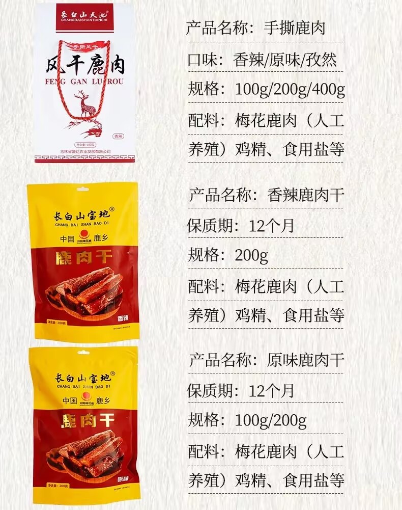 Changbai mountain Tianchi northeast Jilin specialty daquan sika deer hand-torn air-dried sauce venison dried cooked food original gift box