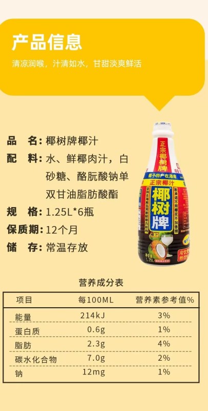 Coconut palm brand official flagship coconut milk 1.25 liters of island coconut milk