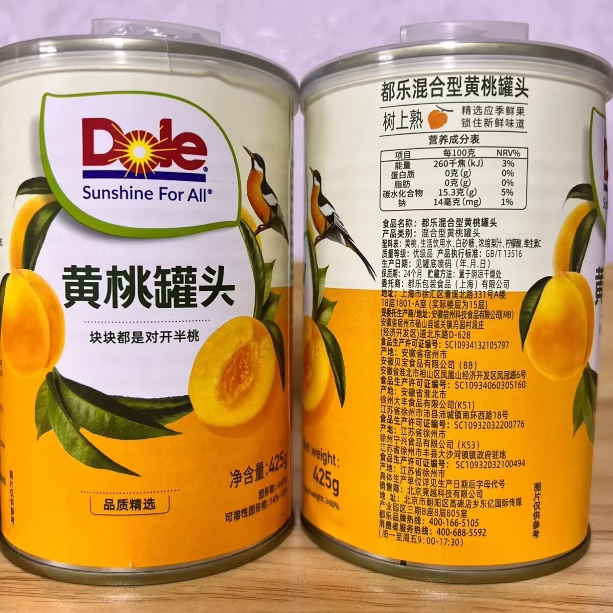 Dole Dole authentic canned yellow peach canned fruit syrup 425g/ can leisure snacks.