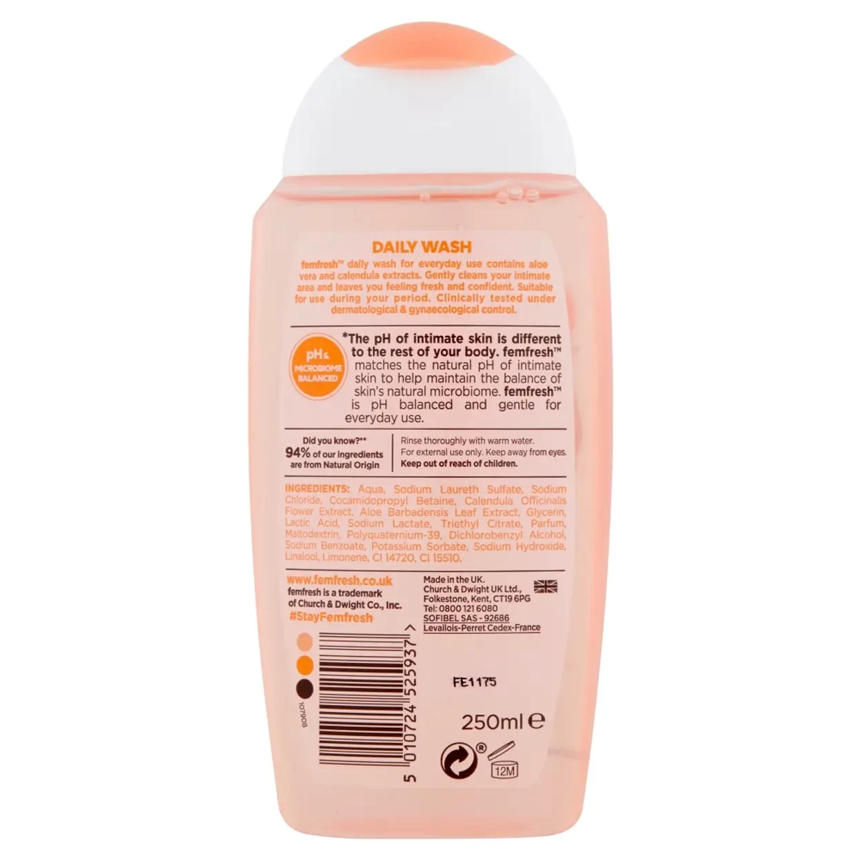 Femfresh Intimate Daily Wash is expertly formulated to cleanse intimate skin while maintaining a healthy pH balance. Ordinary washes and shower gels can disrupt the low pH of the intimate area, leading to irritation. This gentle daily wash, enriched with soothing chamomile and calming aloe vera, helps protect against such irritations. Its pleasant fragrance ensures long-lasting freshness, making it suitable for everyday use. Dermatologically and gynaecologically tested, Femfresh Intimate Daily Wash offers a hypoallergenic and soap-free solution for intimate hygiene.