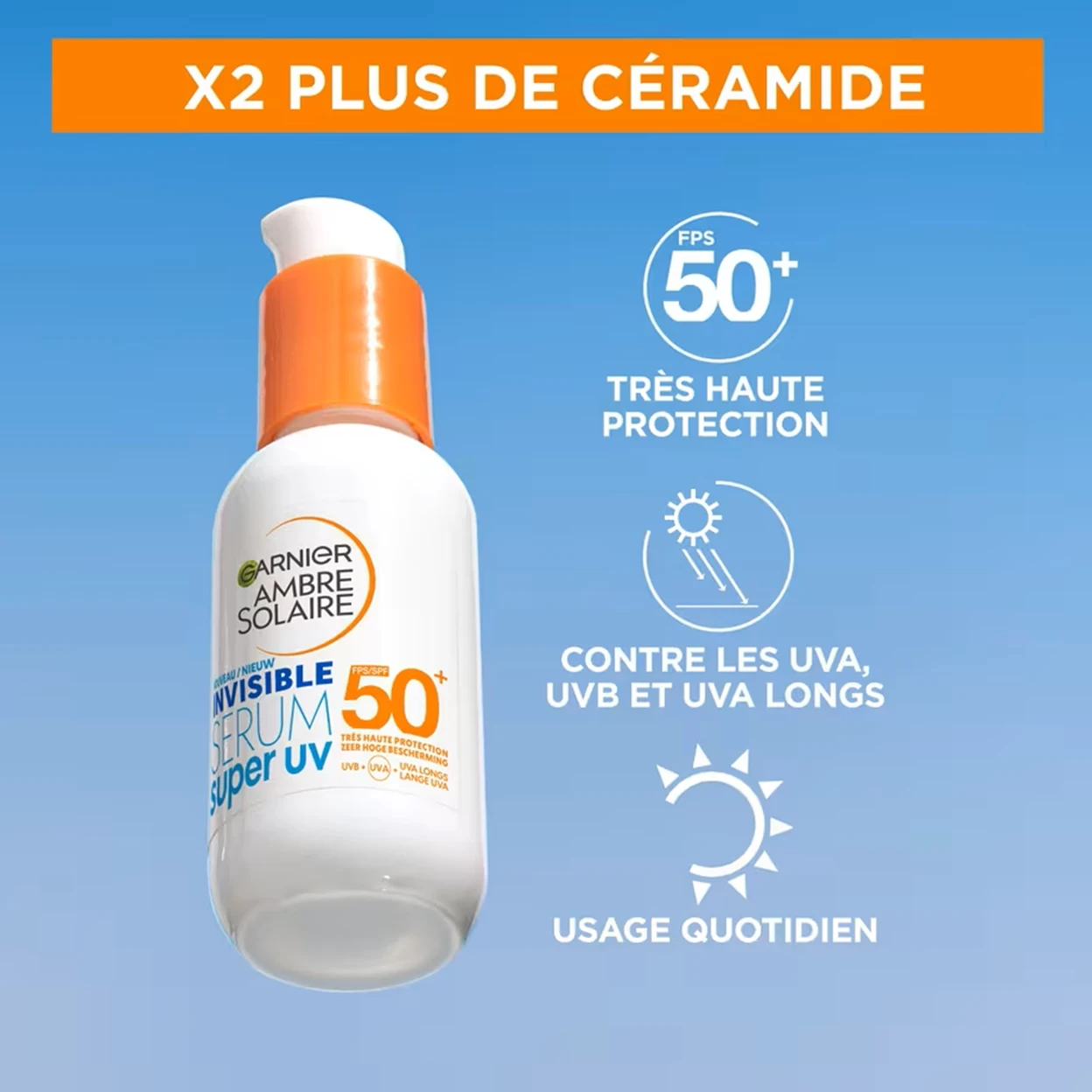 Garnier Ambre Solaire SPF 50+ Super UV Invisible Serum Moisturiser for Face 30ml