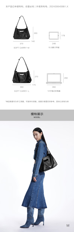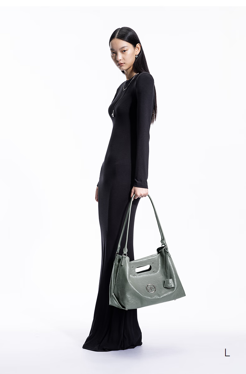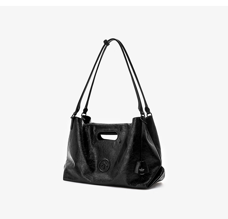 GROTTO new SOFT CARRY tote bag versatile large capacity cowhide handbag shoulder soft bag gift classic black M (bright silver)