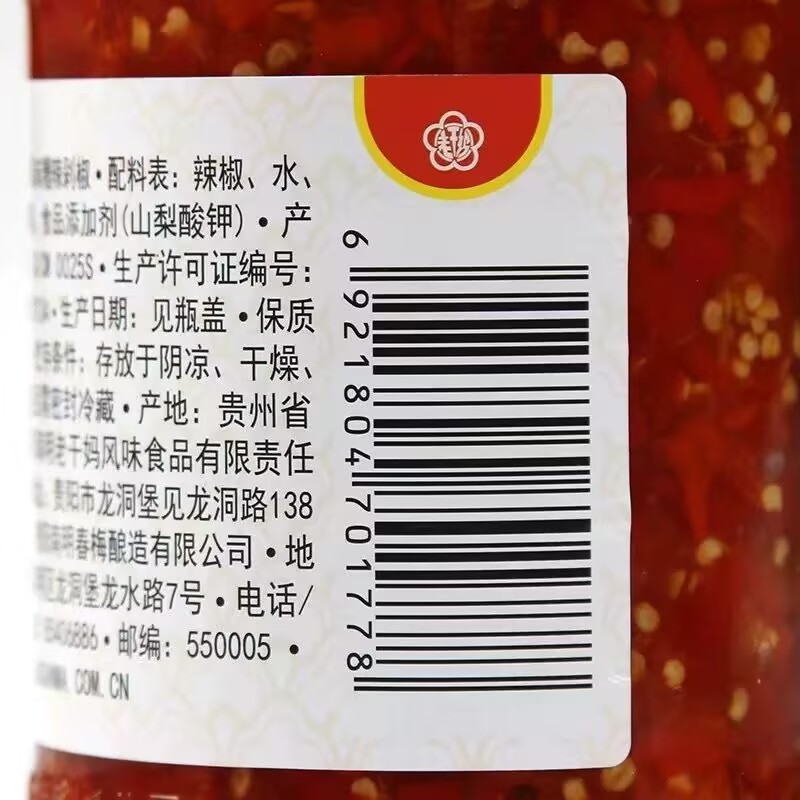 Guizhou specialty Laoganma bad Chili, chopped pepper and fish head sauce stir-fried dishes are packed in 750g*2 bottles