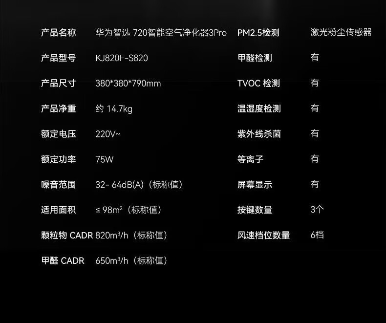 Huawei Intelligent Air Purifier 3Pro Full-effect Purification, Aldehyde Removal, Active Disinfection and Large-space Purification