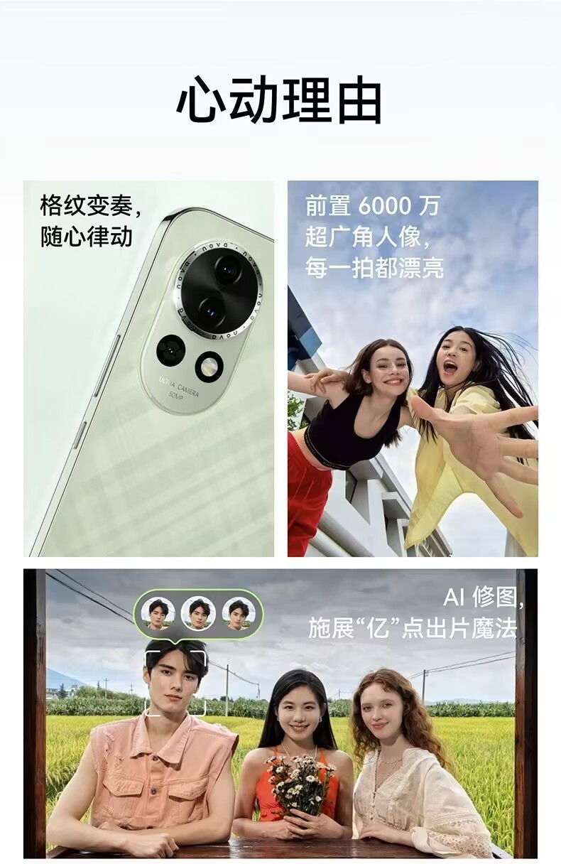 Huawei nova 13 front 60 million super wide-angle portrait AI retouching Beidou satellite picture news Huawei official flagship store HarmonyOS face-to-face screen.