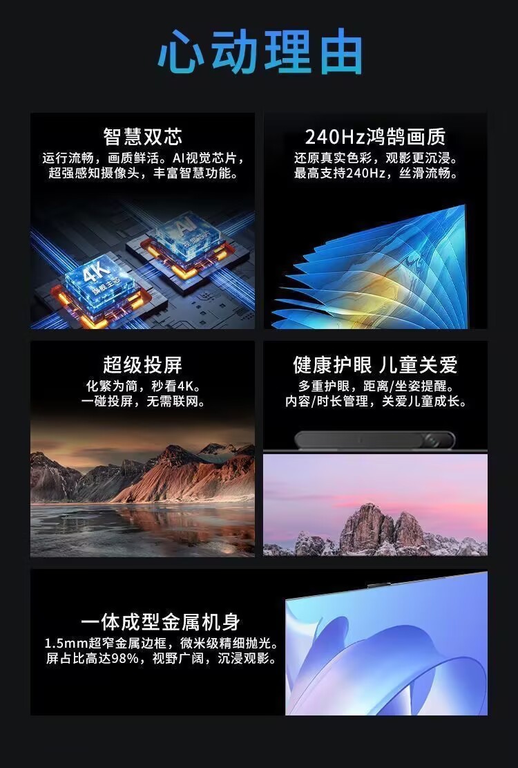 Huawei Smart Screen S3Pro75-inch 240Hz Honghu Picture Quality 4K HD Smart Full-screen Ultra-thin Home TV