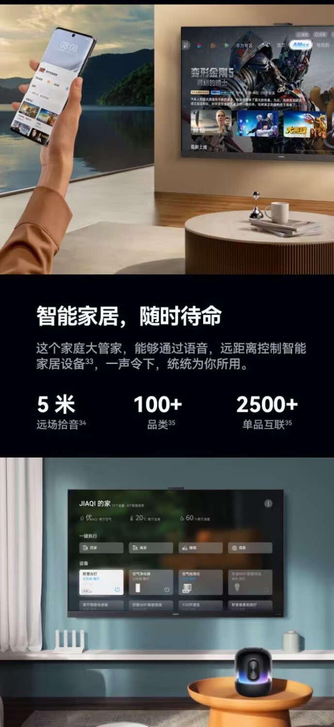 Huawei Smart Screen V 65 3rd Generation 120Hz eight nuclear Chip Ultra-thin Full Screen Smart Game TV 6+64G