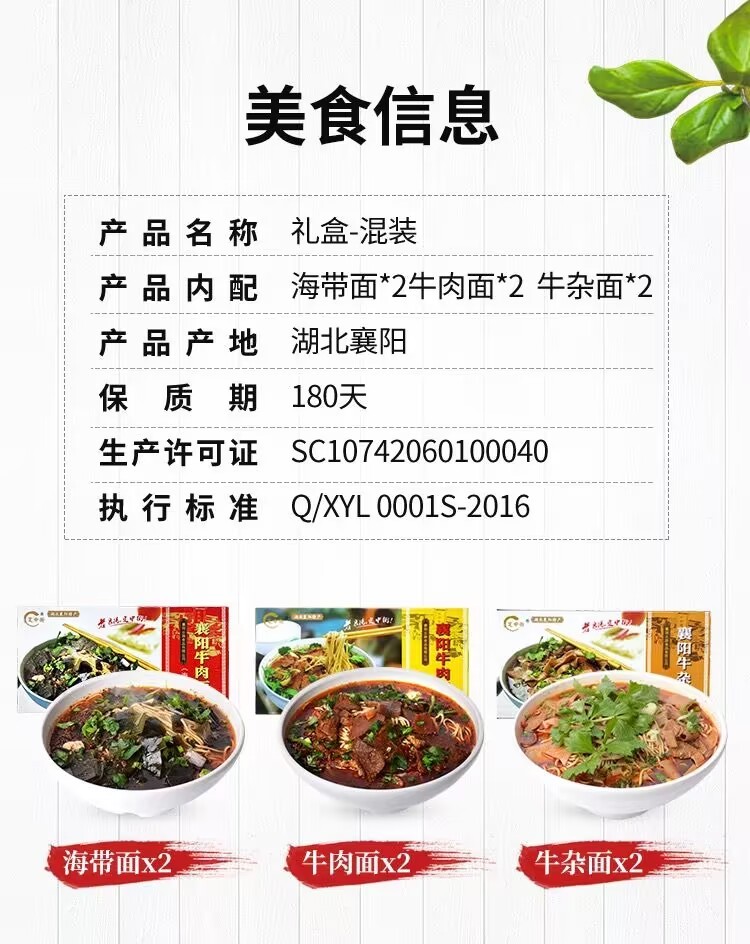 Hubei specialty authentic Dingzhong Street beef noodles 6 gift boxes