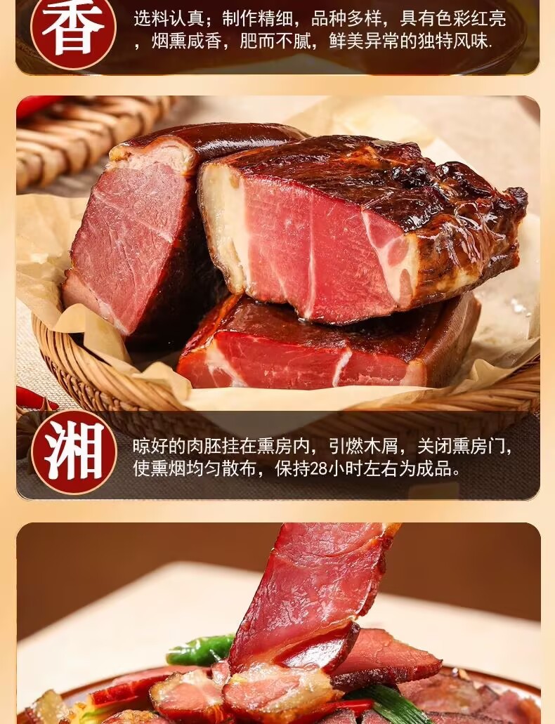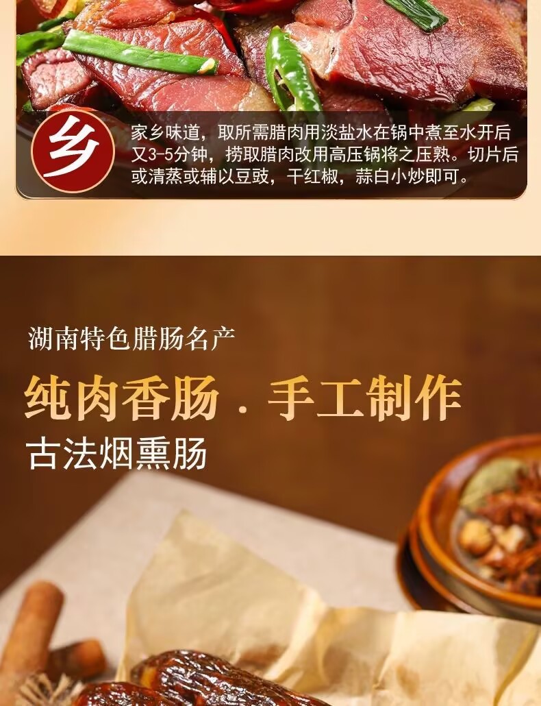 Hunan authentic smoked old bacon sausage Wuhua bacon