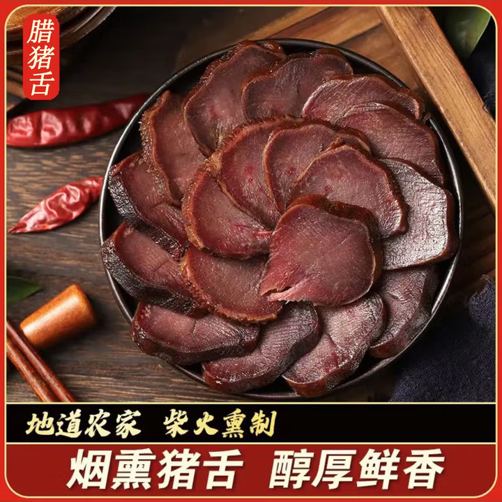 Hunan specialty smoked pork bacon authentic local pig tongue Hunan bacon farmer homemade smoked 500g local pig tongue 10 pounds 500g 10 bags