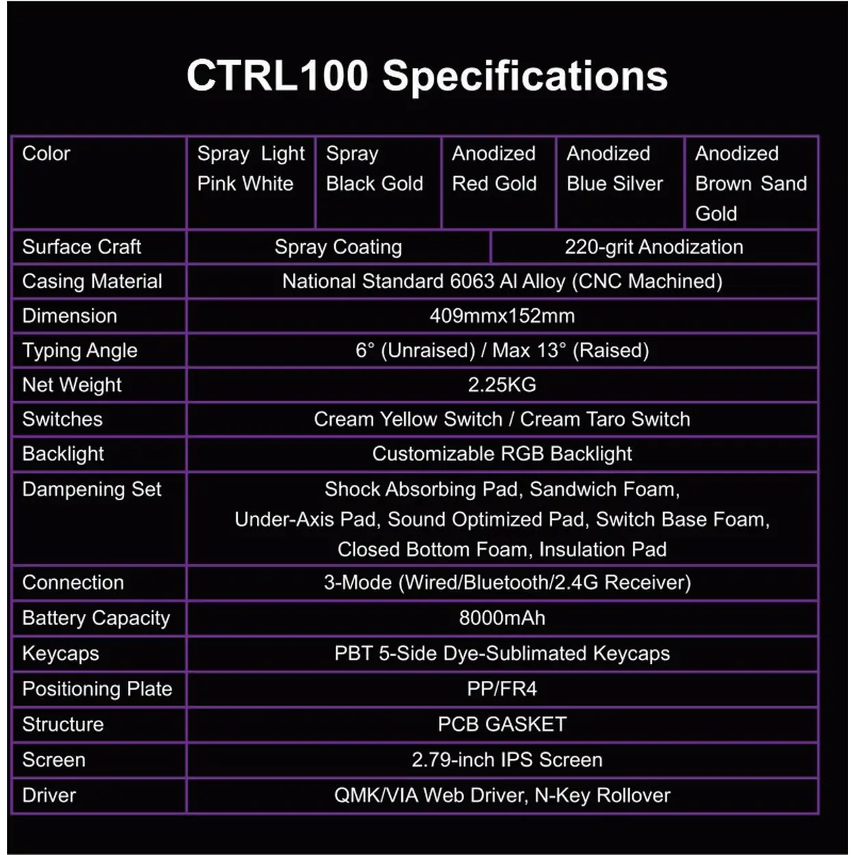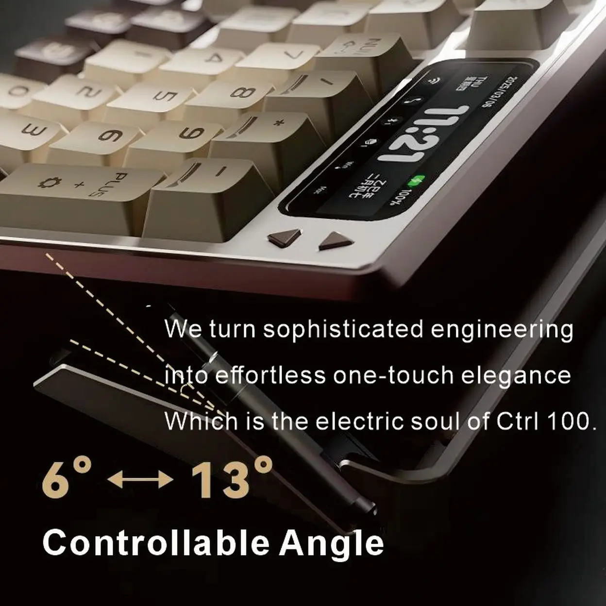 【Innovative Motorized Lift】Siukie CTRL100 CNC Aluminum Mechanical Keyboard, HMX Cream Taro HIFI Switches, Customized IPS Screen, Gasket Mount, Tri-Mode Wireless, 96% Layout, US QWERTY, Brown