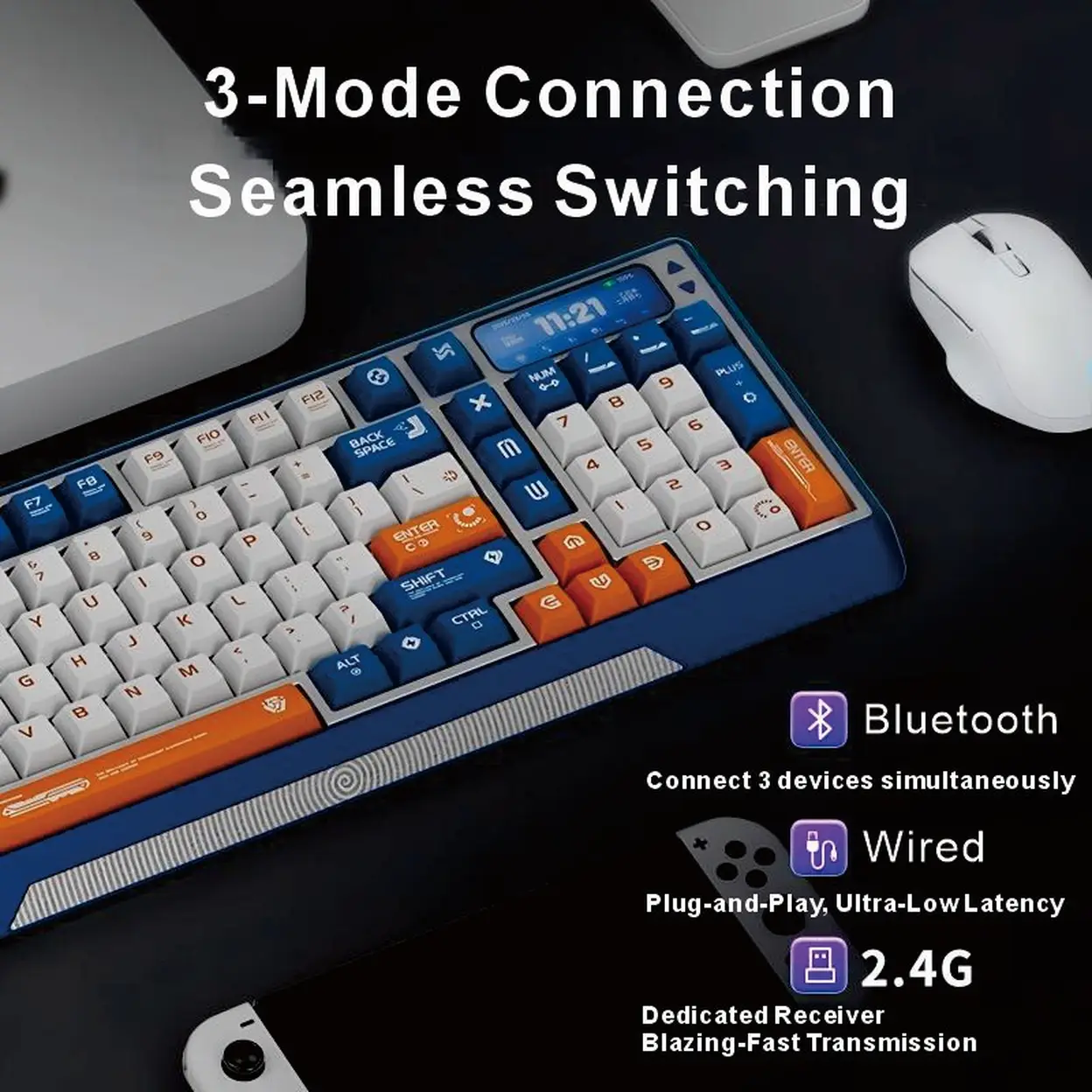 【Innovative Motorized Lift】Siukie CTRL100 CNC Aluminum Mechanical Keyboard, HMX Cream Taro HIFI Switches, Customized IPS Screen, Gasket Mount, Tri-Mode Wireless, 96% Layout, US QWERTY, Klein Blue
