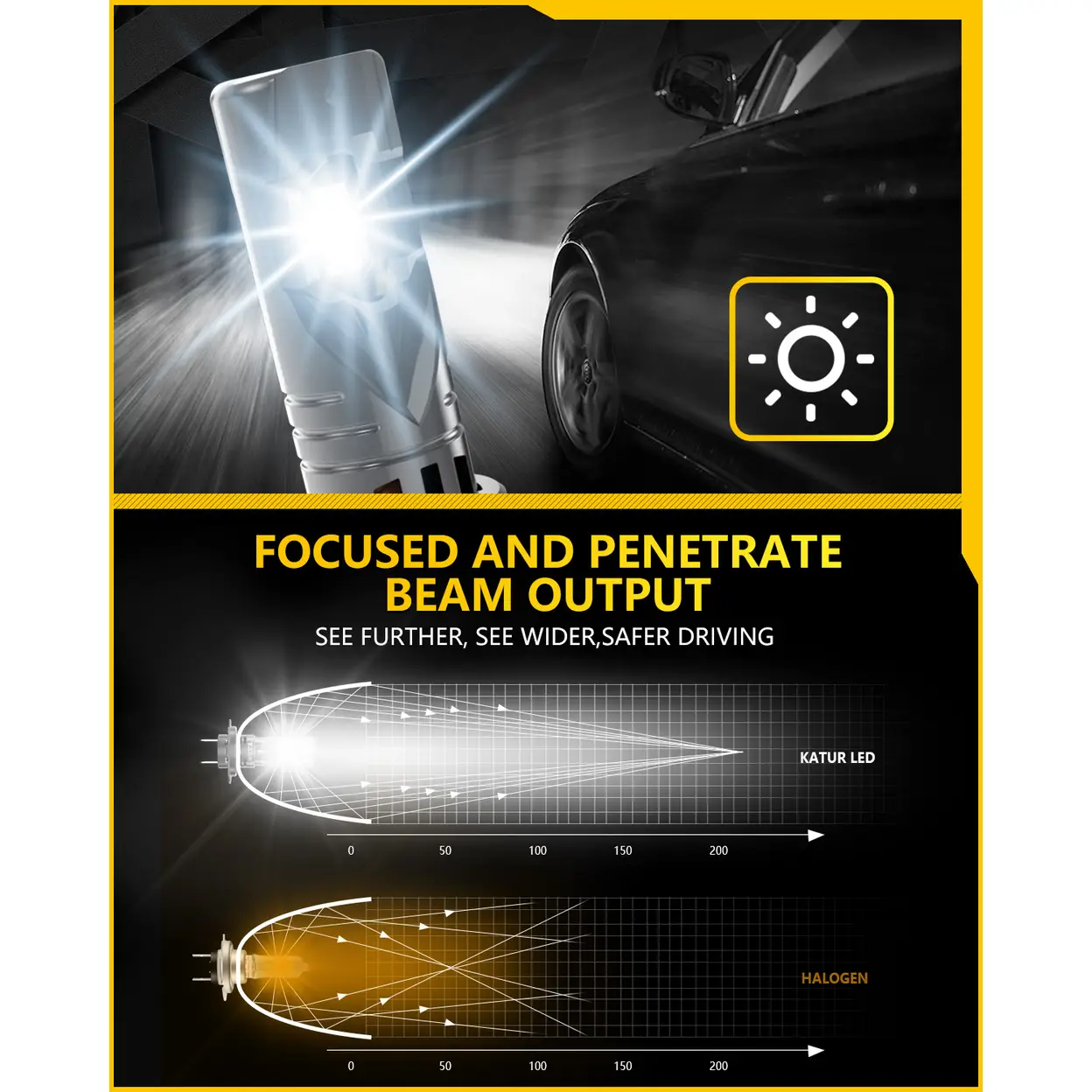 Top Automotive-Grade LED GC chips. 100W 30000LM per pair, DC11-18V, 6000K xenon white, 360° illumination and 1200 feet lighting range high output achieve a farther & wider lighting field, which makes signs and obstacles can be seen clearly, increased safety and security on the road.