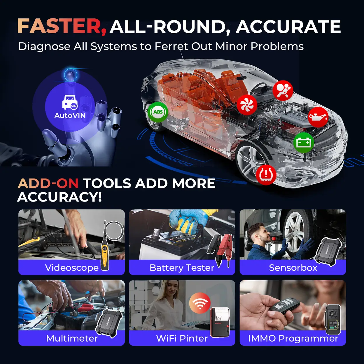 9. Compatible with X-PROG3, X-431 TSGUN, BST360, VSP-600, ADAS, WIFI Printer etc.