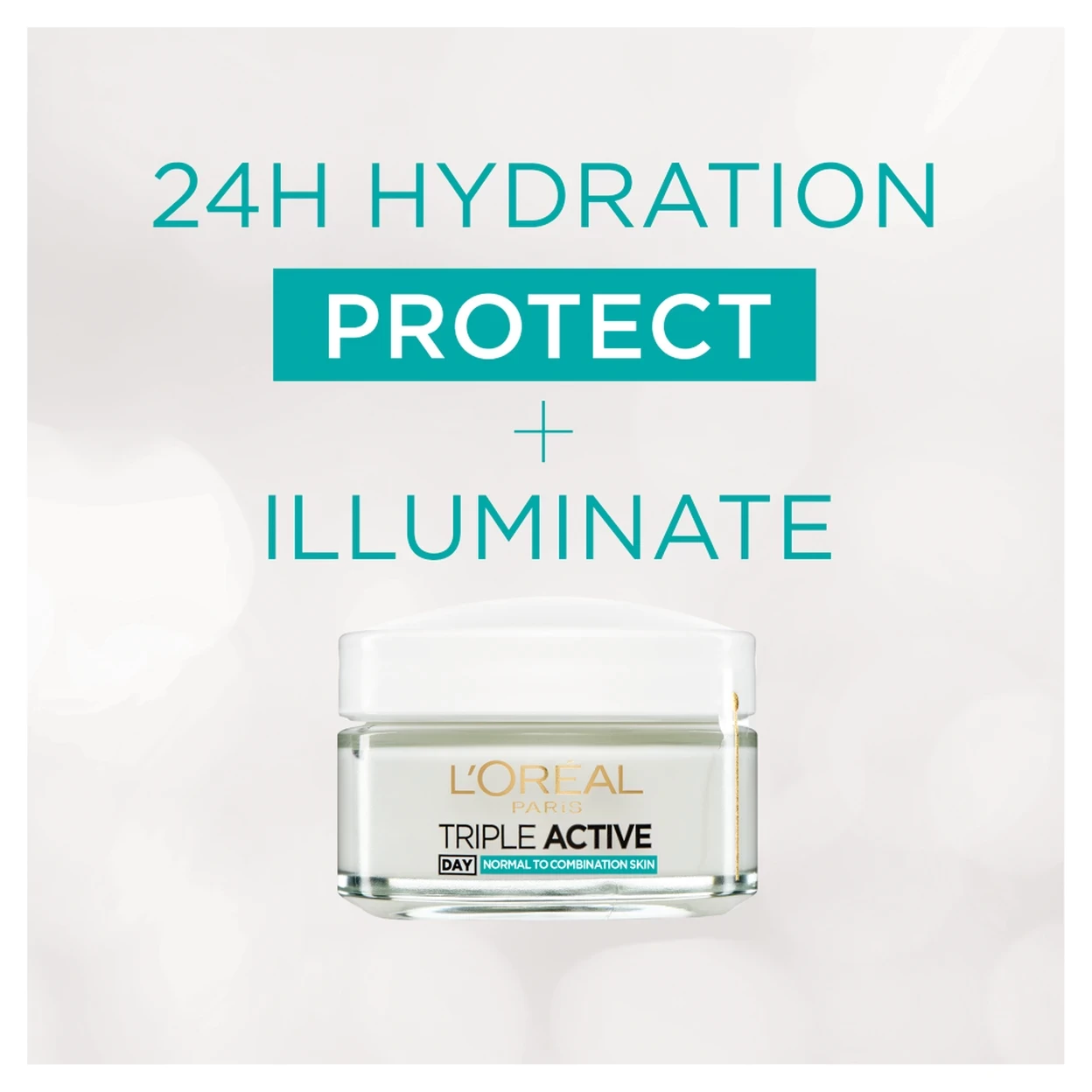 L’Oréal Paris Triple Active Moisturizer is designed to cater to the needs of normal and combination skin. Its velvety, non-greasy texture absorbs quickly, leaving your skin feeling soft and silky. Every day, our skin faces multiple aggressions such as UV rays, stress, and pollution, which can lead to premature aging, dullness, and dehydration. Triple Active is formulated by the L’Oréal Paris laboratories to provide long-lasting hydration and strengthen the skin’s barrier function. The combination of advanced active ingredients and luxurious textures helps reveal more radiant and beautiful-looking skin.