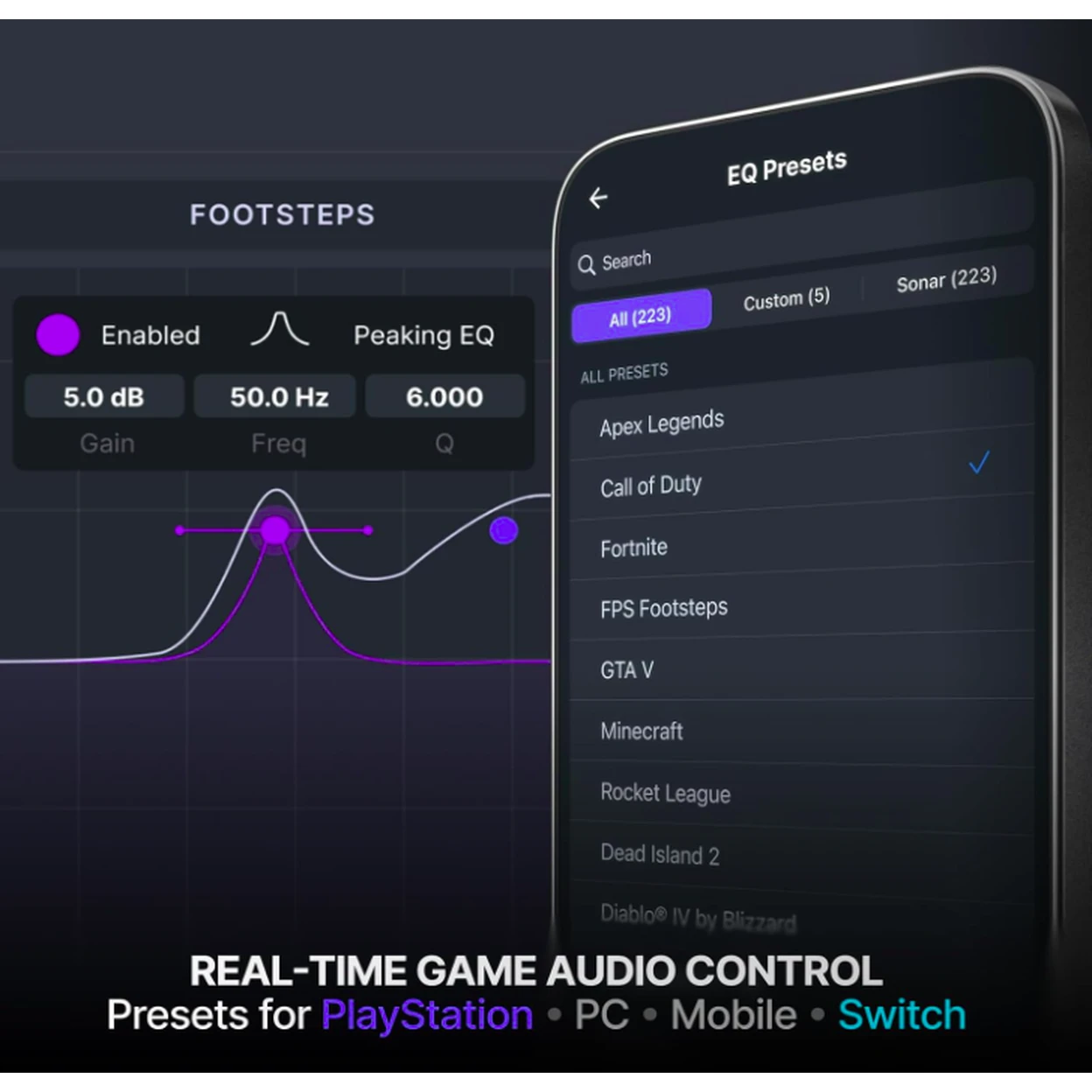 Over 200 EQ presets available via the Arctis Companion App for optimized sound in each game.
